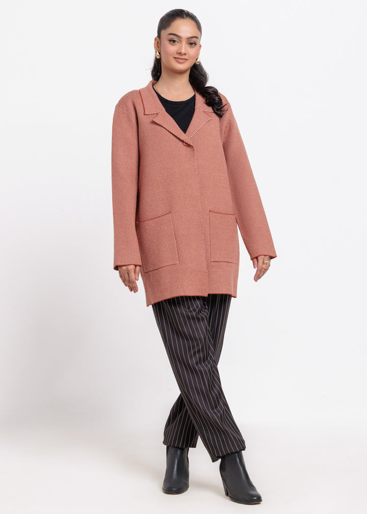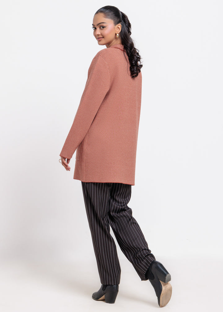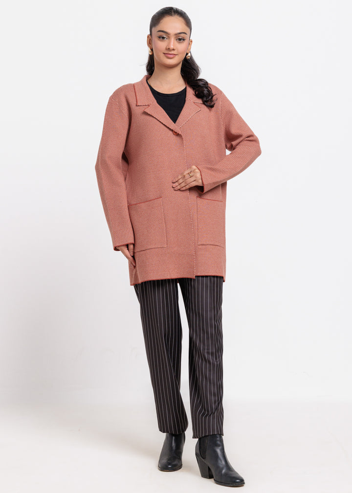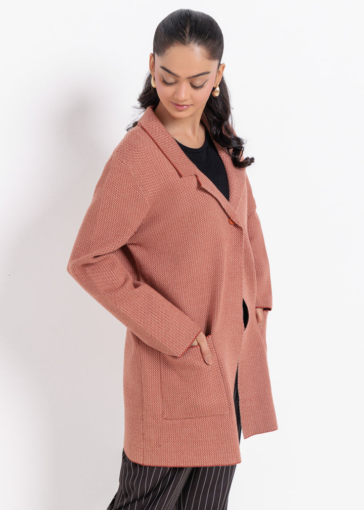 Rust-Notched Collar Full Sleeves Cardigan Sweater (25Y-106-67)