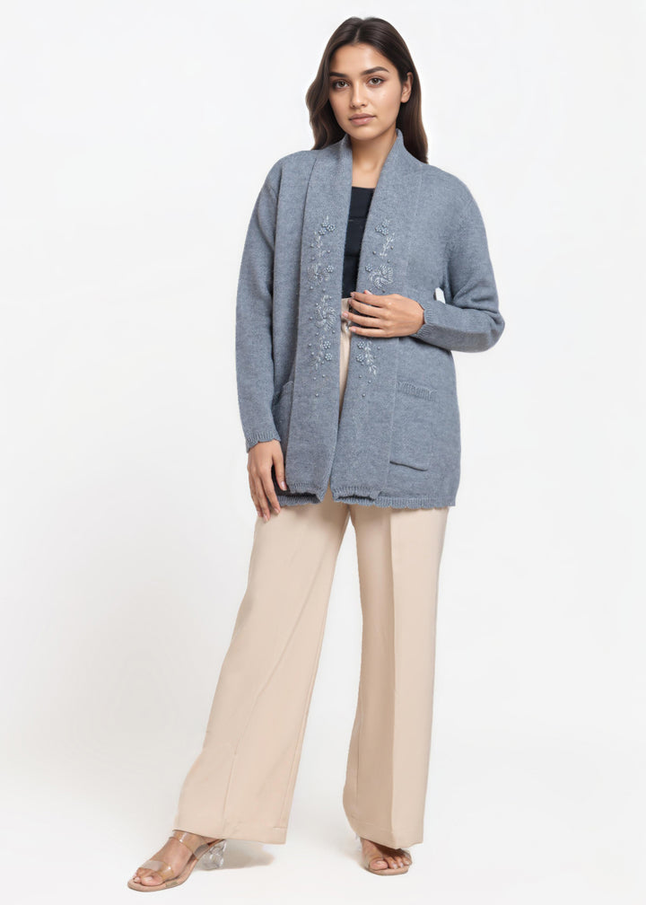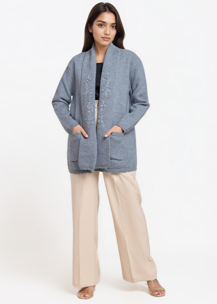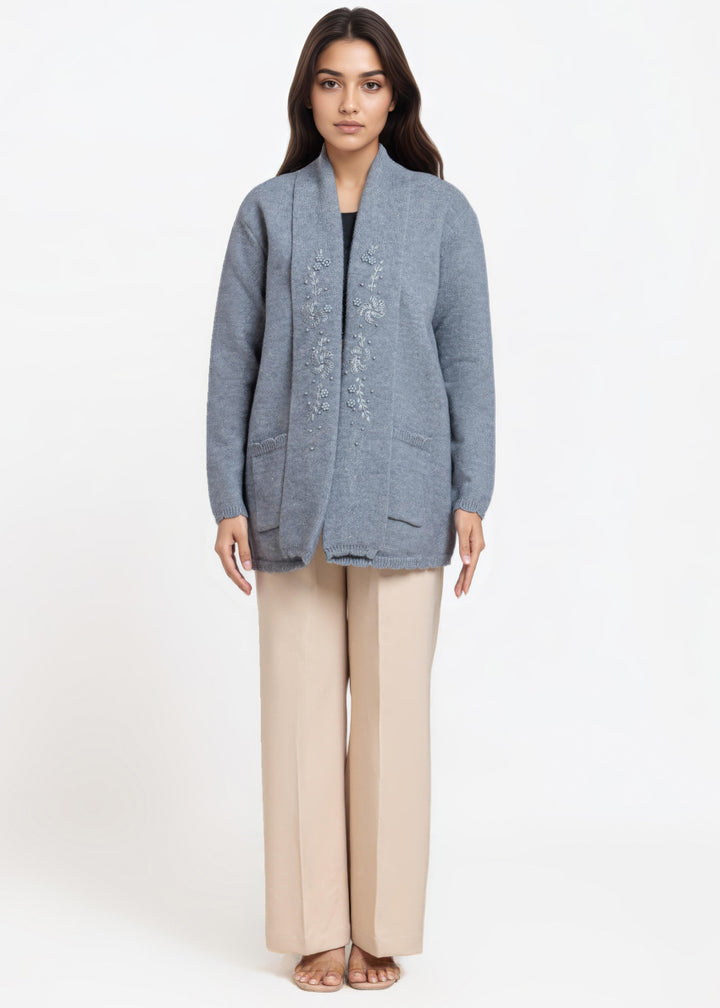 Grey-V-Cardigan Full Sleeves Sweater (25Y-108-67)