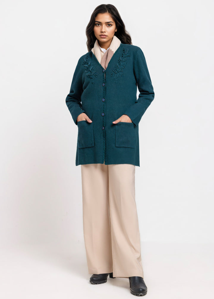 D-Green-V-Cardigan Full Sleeves Sweater (25Y-109-67)