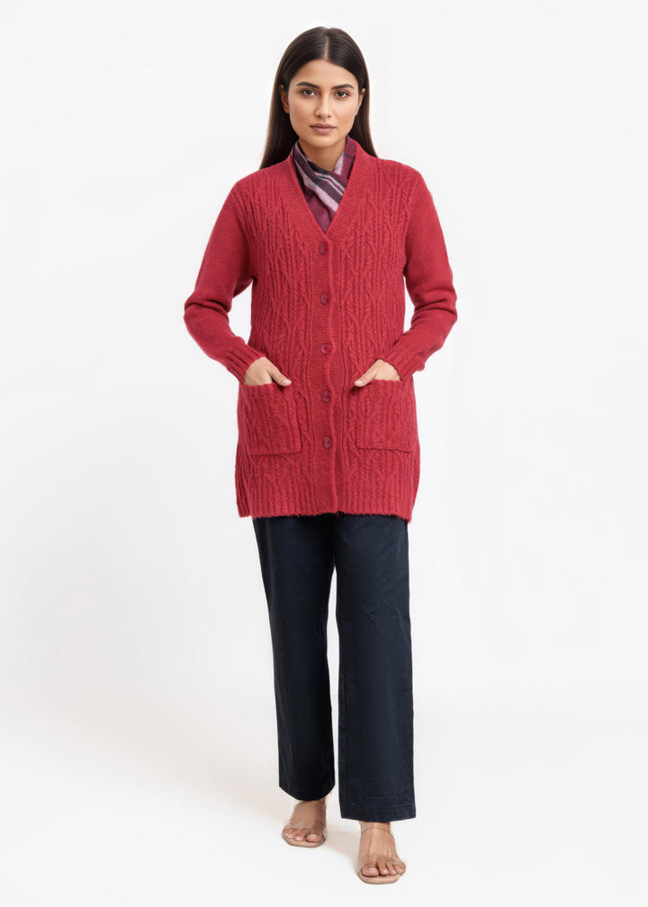 Maroon-V-Cardigan Full Sleeves Sweater (25Y-110-67)