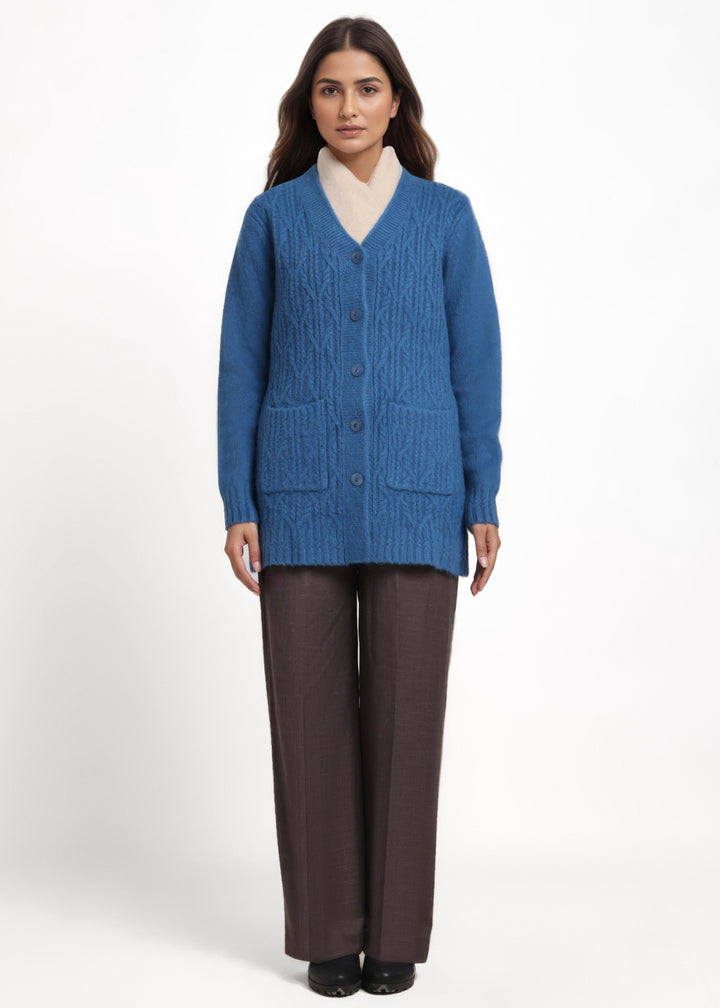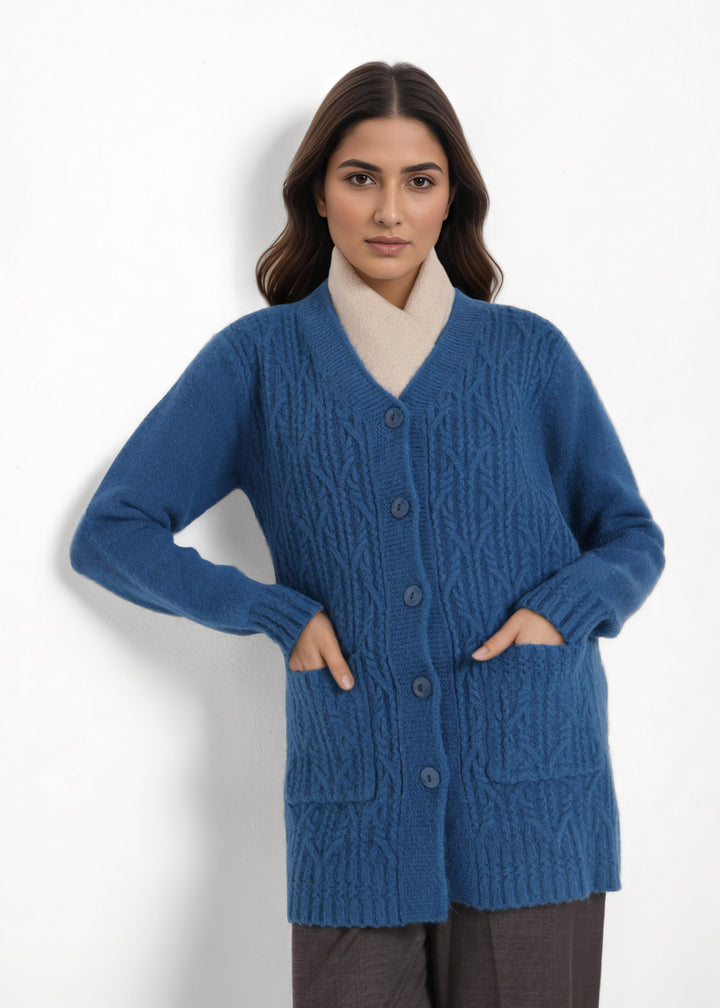 Teal-V-Cardigan Full Sleeves Sweater (25Y-110-67)