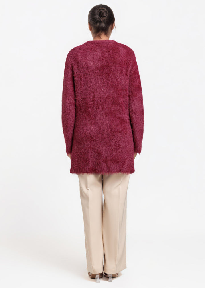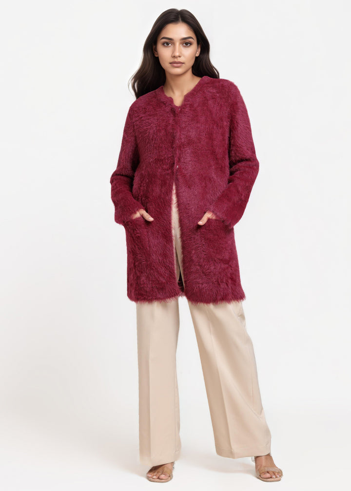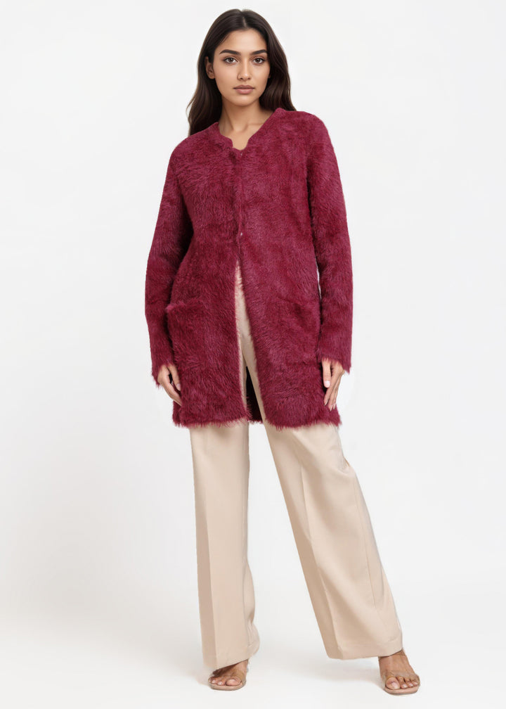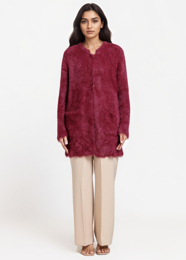 Maroon-Round Neck Full Sleeves Cardigan Sweater (25Y-112-67)