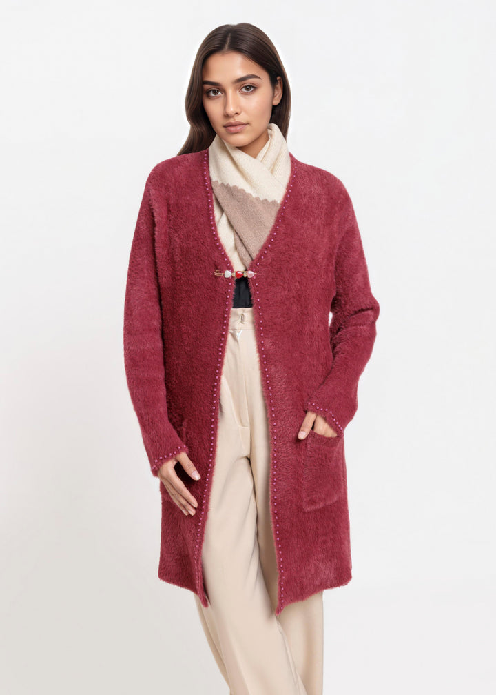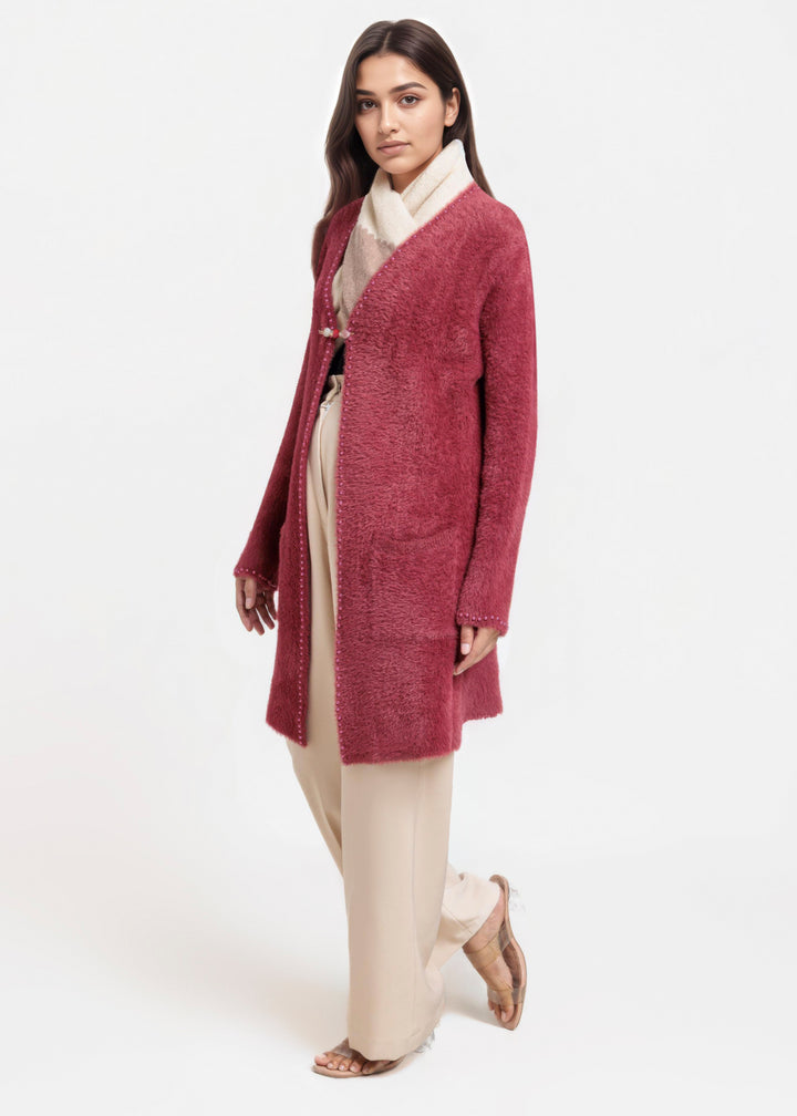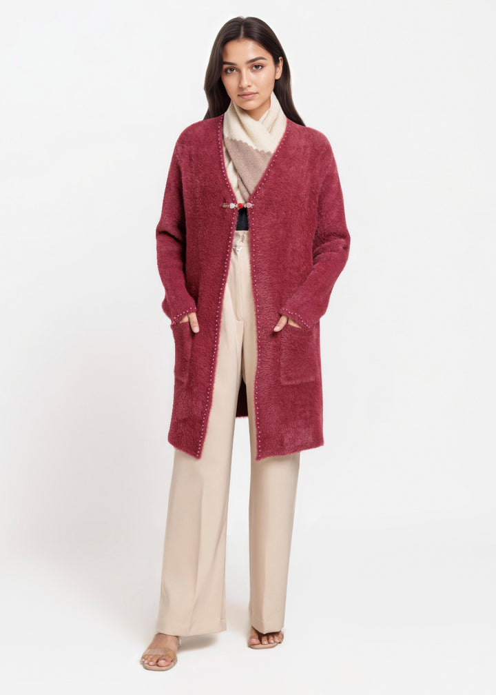 Maroon-V-Cardigan Full Sleeves Sweater (25Y-113-67)