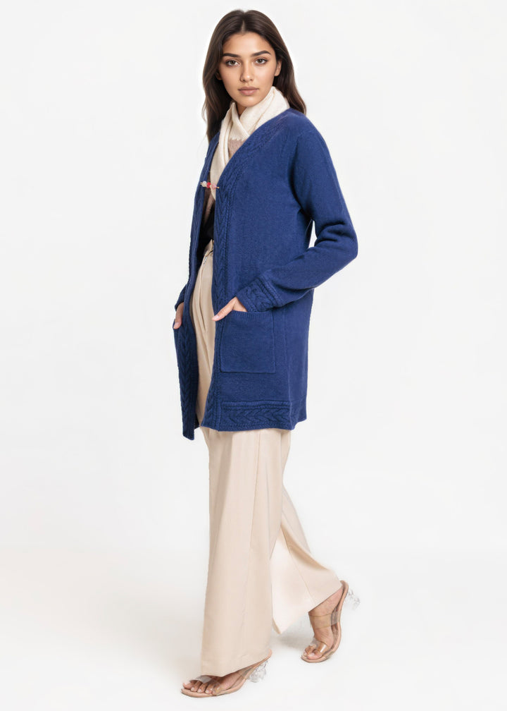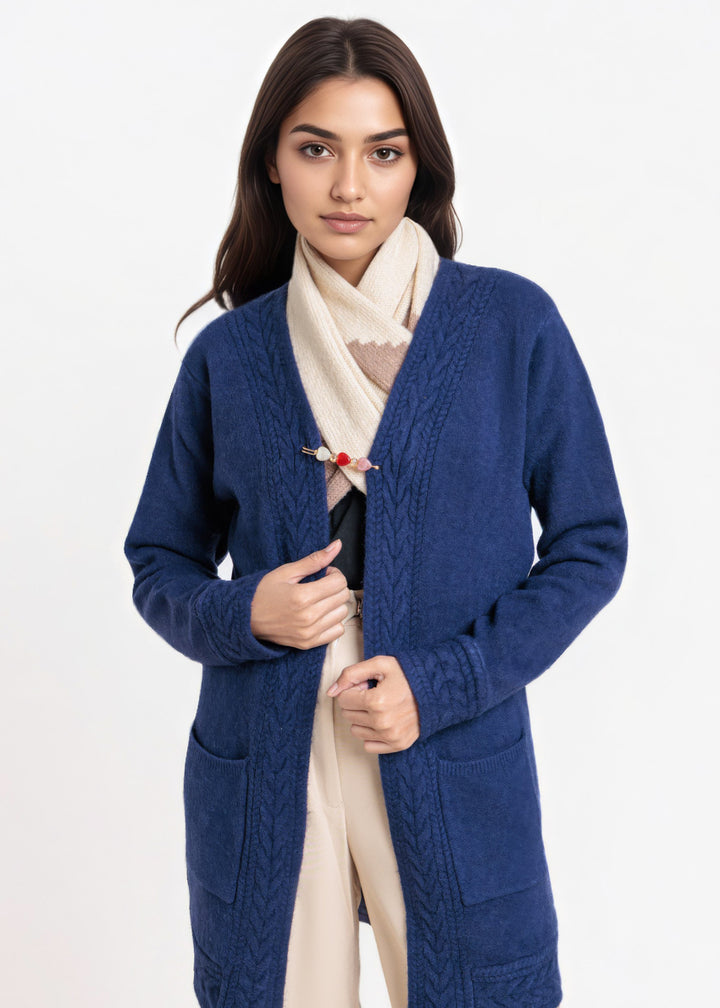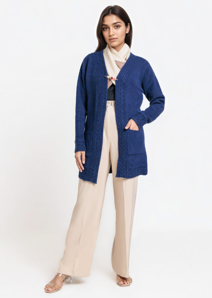 Navy-V-Cardigan Full Sleeves Sweater (25Y-114-67)