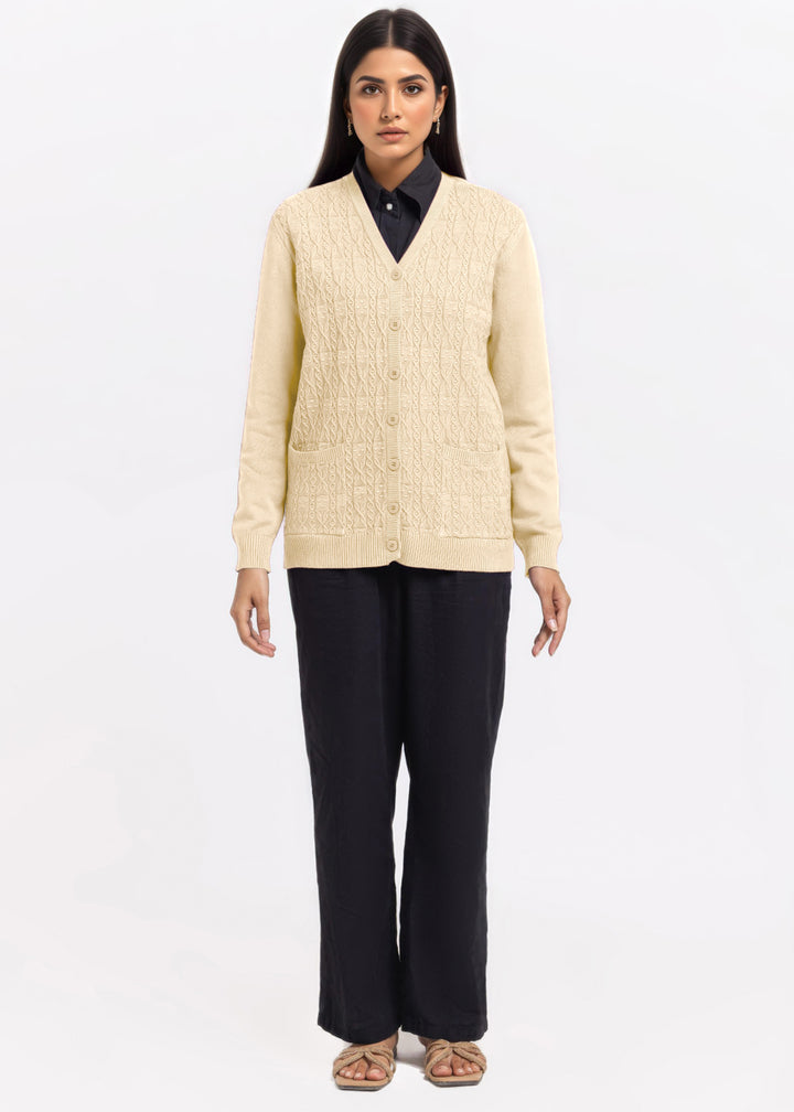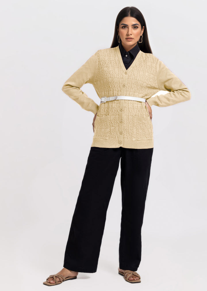 Beige-V-Cardigan Full Sleeves Sweater (25Y-203-67)