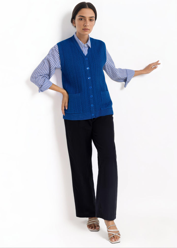 Blue-V-Cardigan Sando Sweater (25Y-206-67)