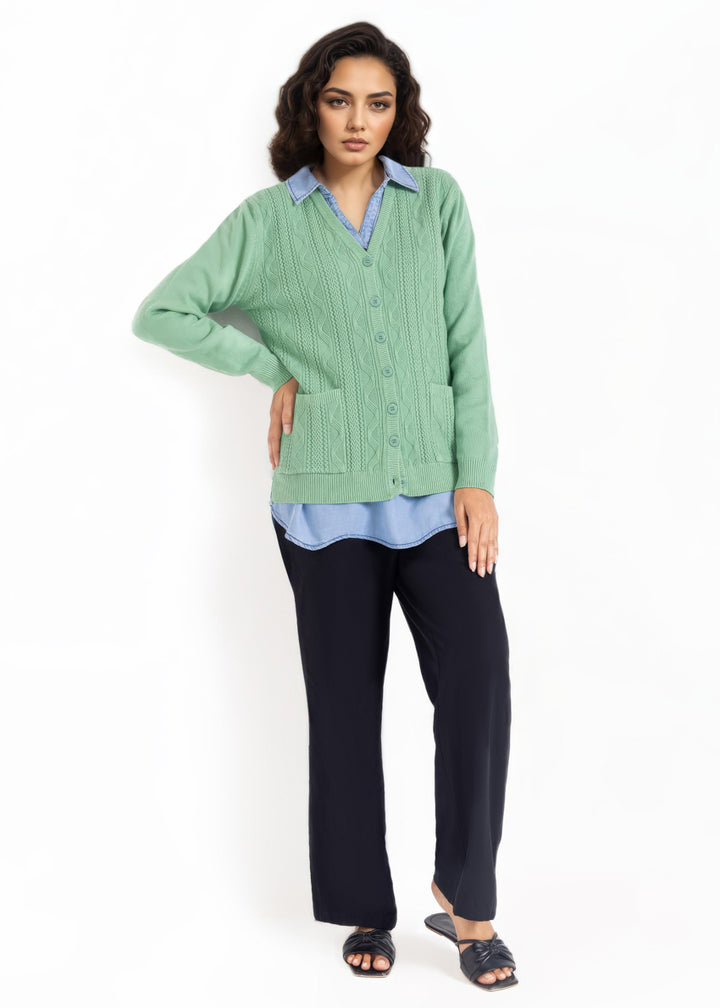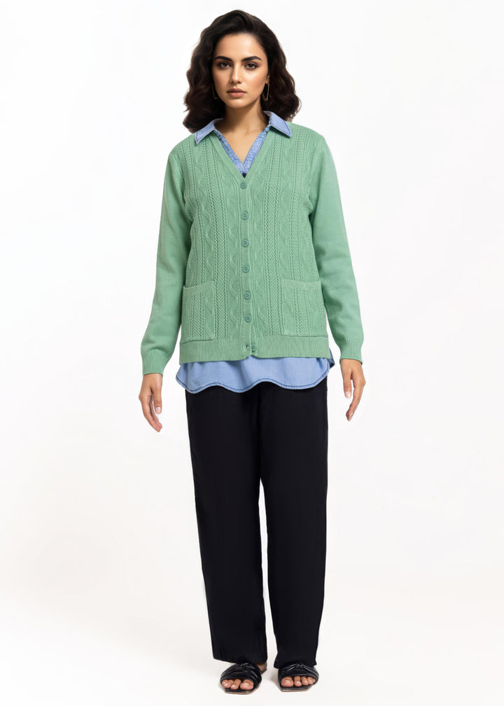 Green-V-Cardigan Full Sleeves Sweater (25Y-207-67)