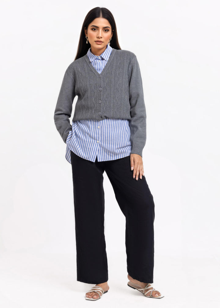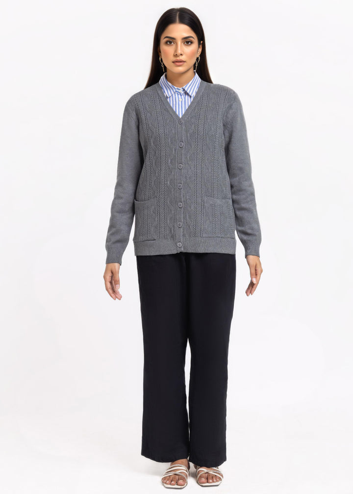 Grey-V-Cardigan Full Sleeves Sweater (25Y-207-67)