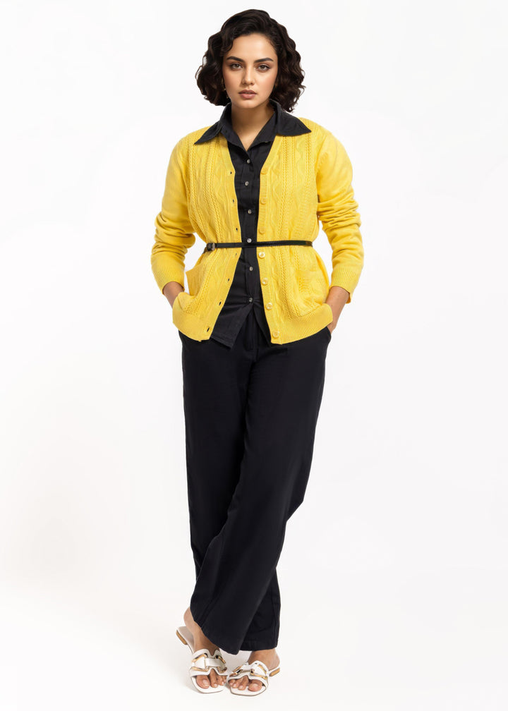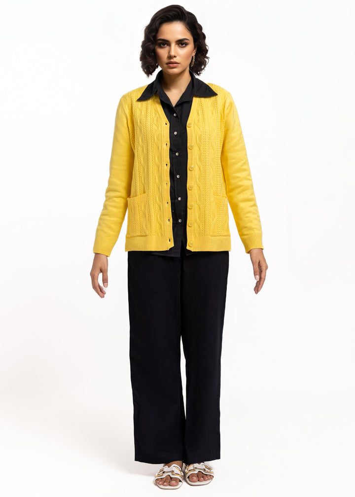Yellow-V-Cardigan Full Sleeves Sweater (25Y-207-67)