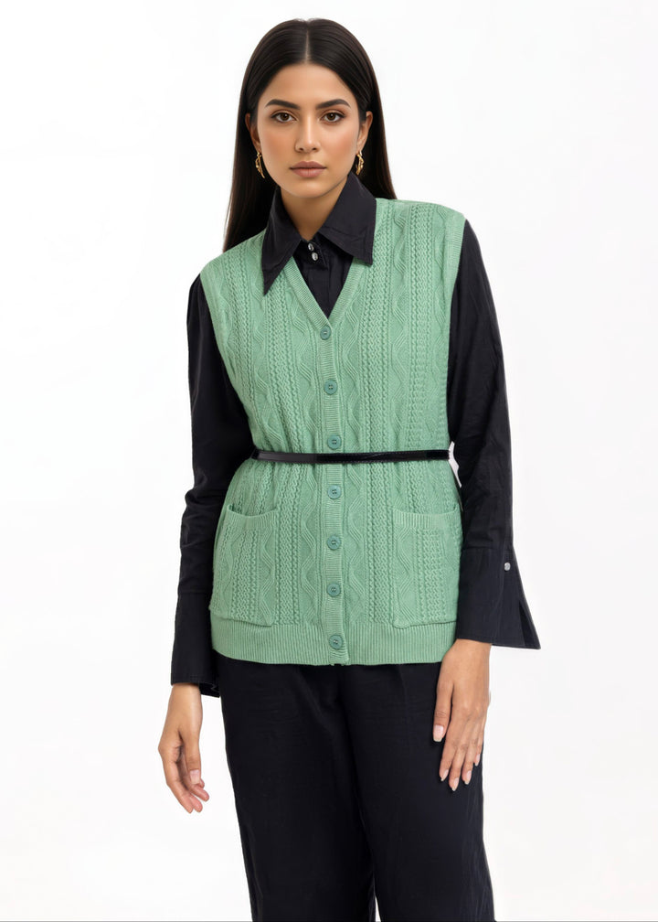 Green-V-Cardigan Sando Sweater (25Y-208-67)