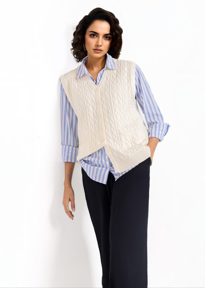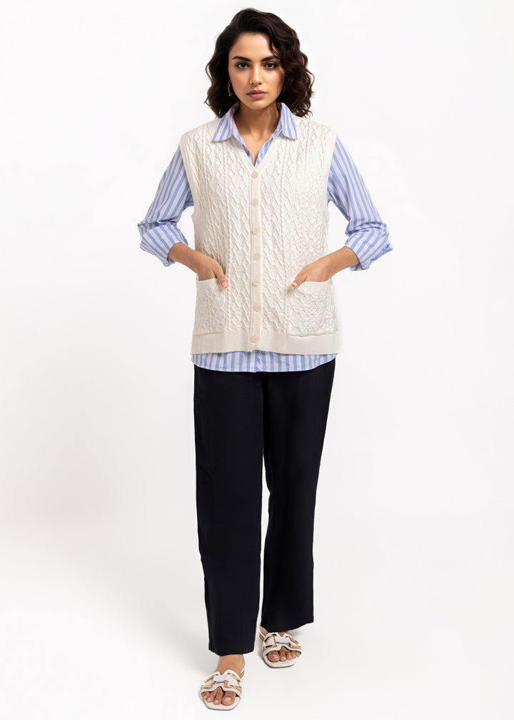 White-V-Cardigan Sando Sweater (25Y-210-67)