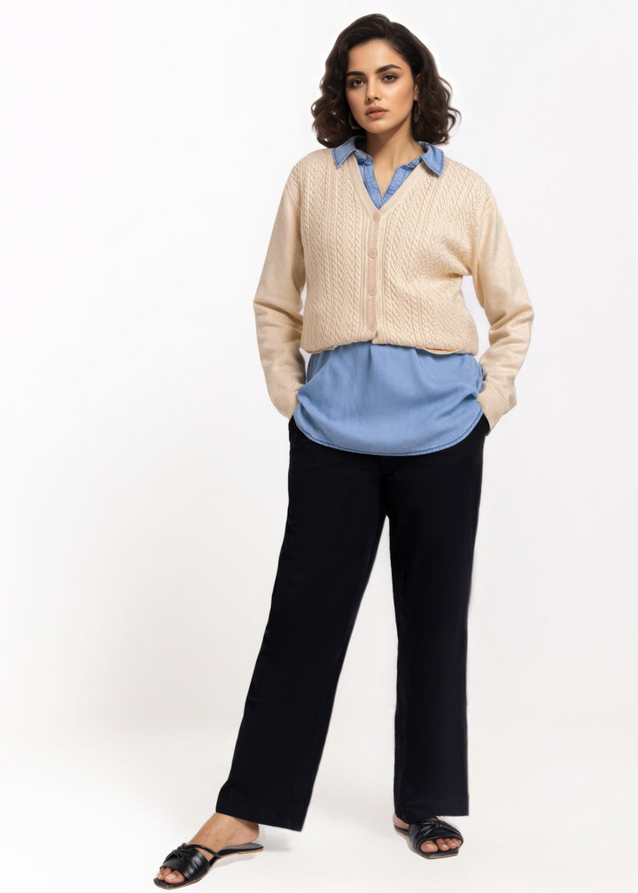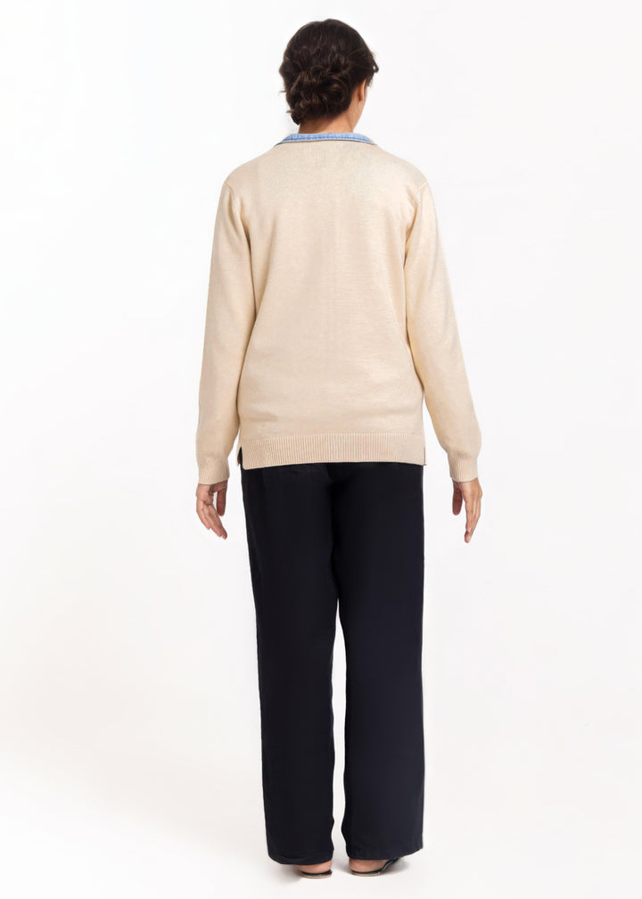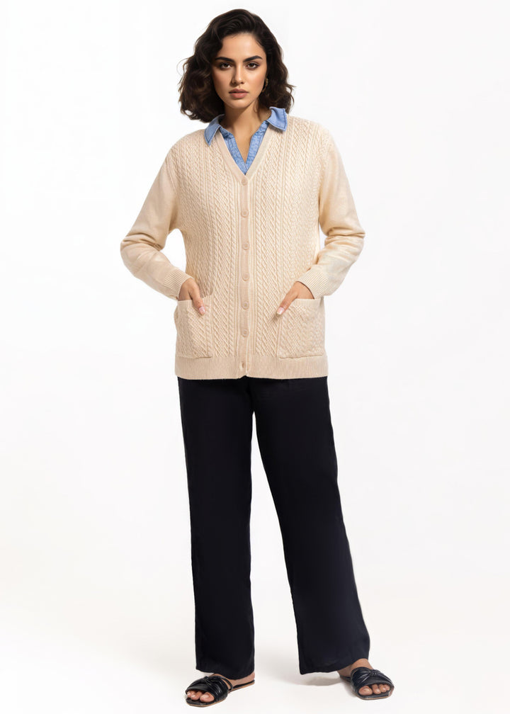 Beige-V-Cardigan Full Sleeves Sweater (25Y-211-67)