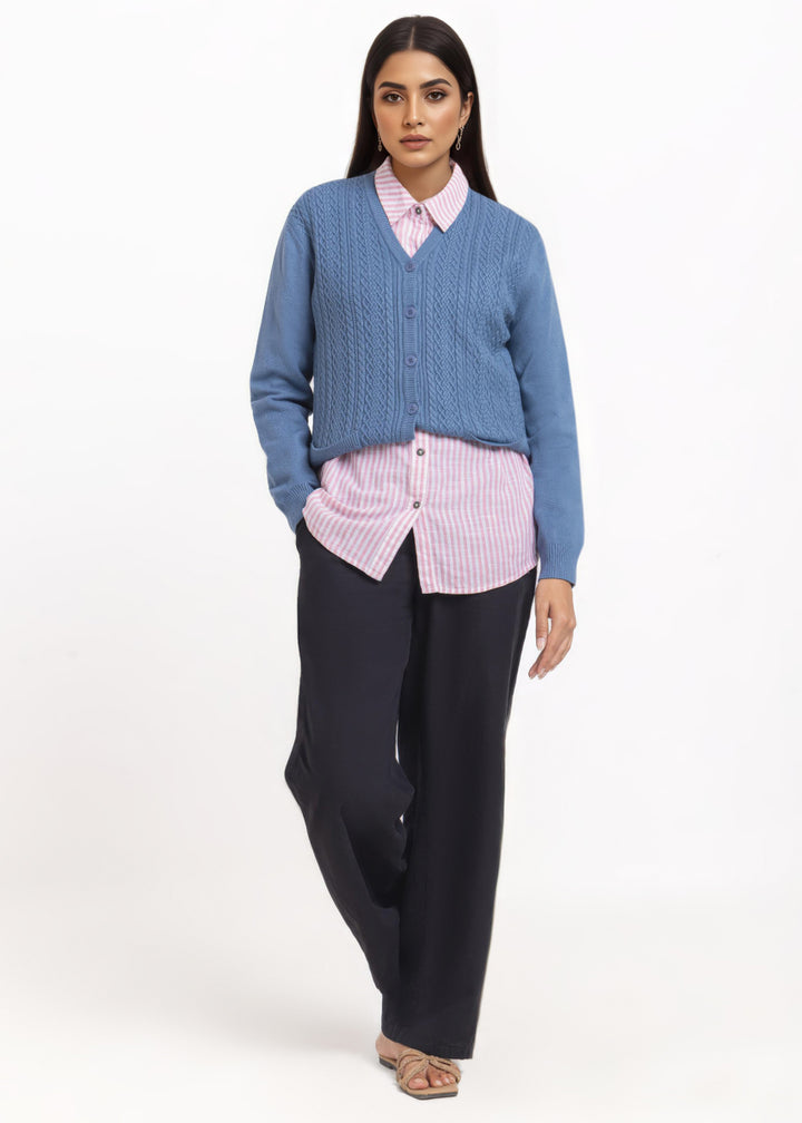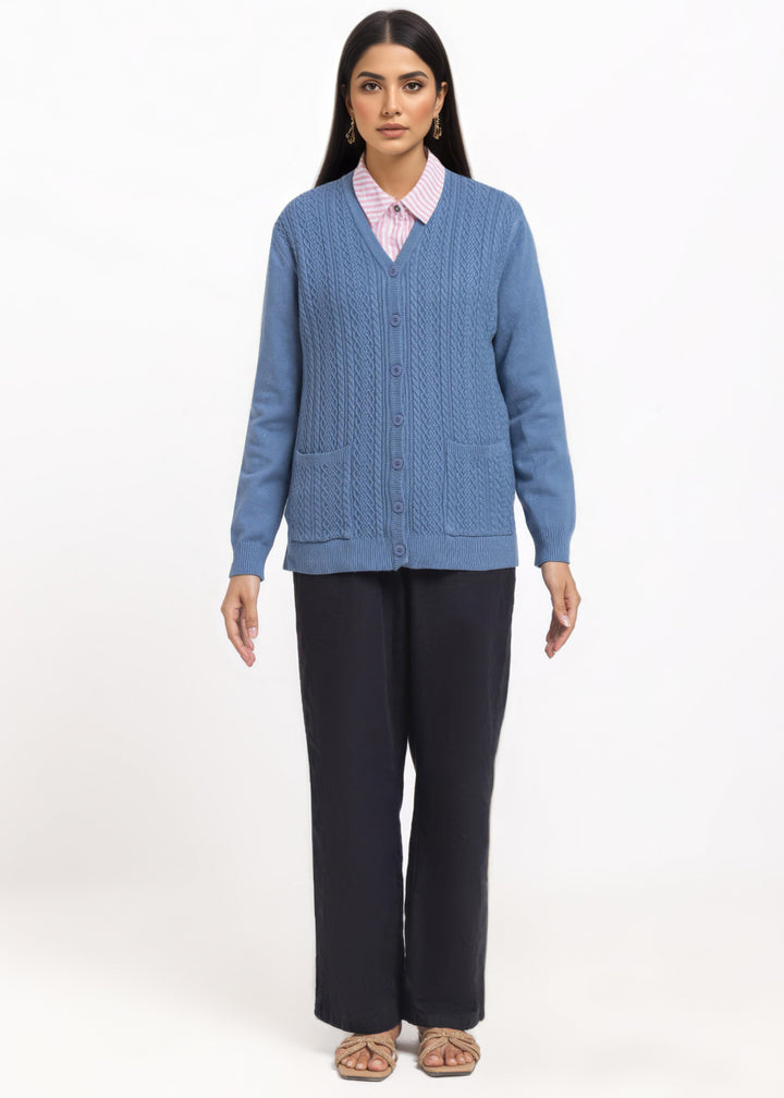 Blue-V-Cardigan Full Sleeves Sweater (25Y-211-67)