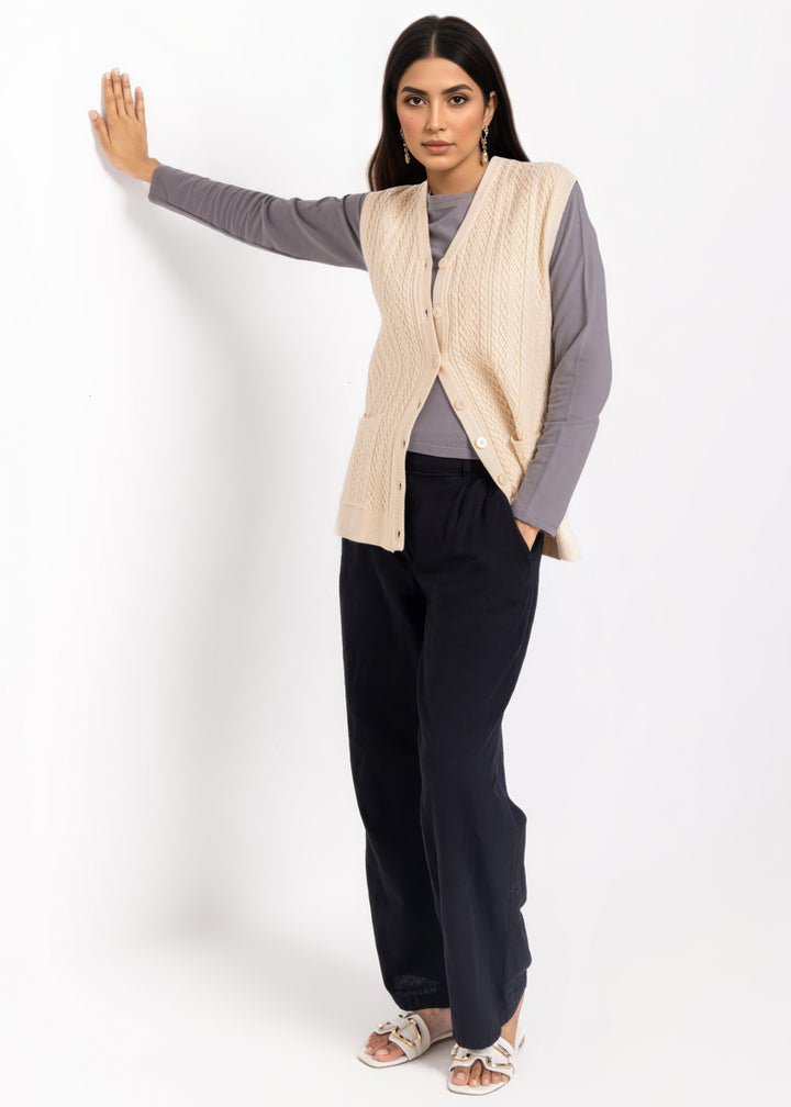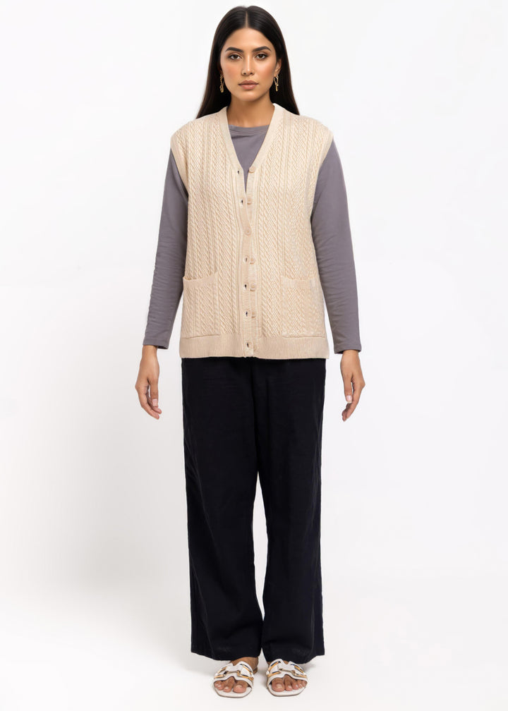 Beige-V-Cardigan Sando Sweater (25Y-212-67)