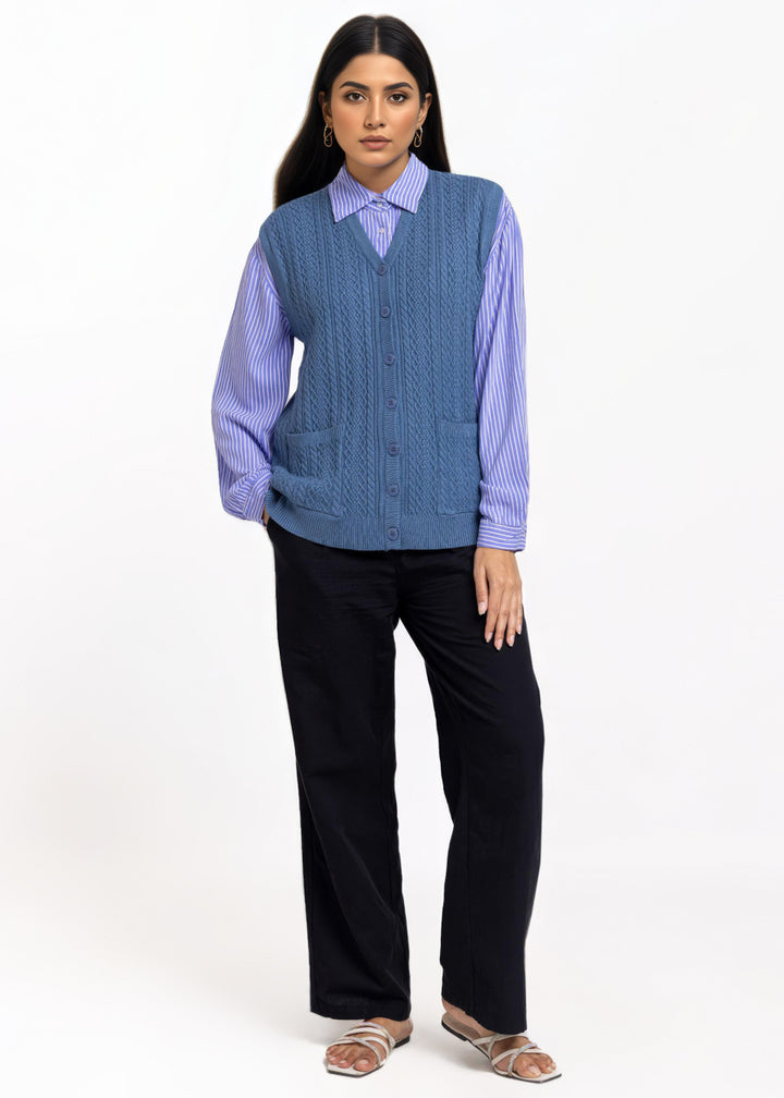 Blue-V-Cardigan Sando Sweater (25Y-212-67)