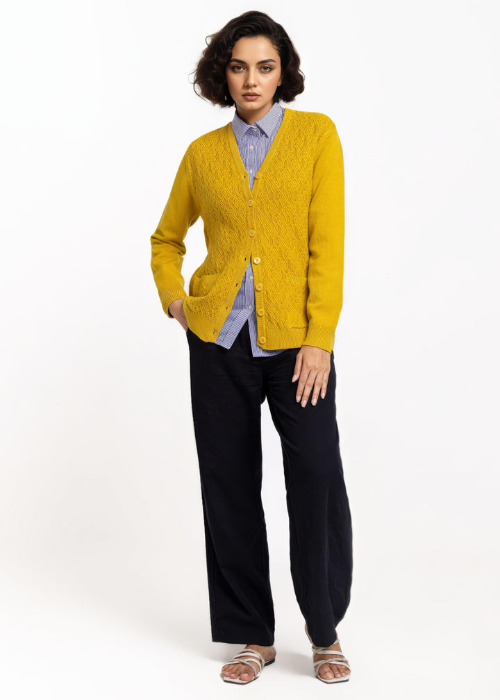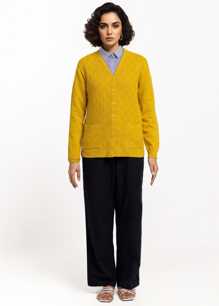 Mustard-V-Cardigan Full Sleeves Sweater (25Y-213-67)