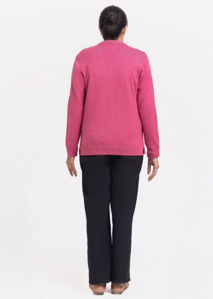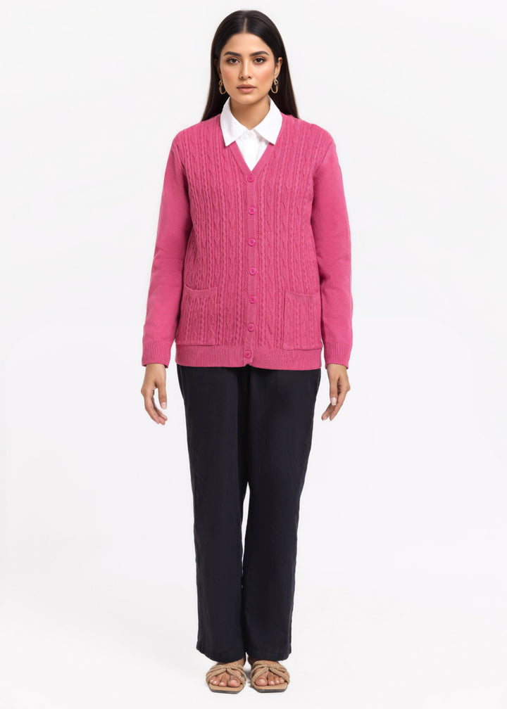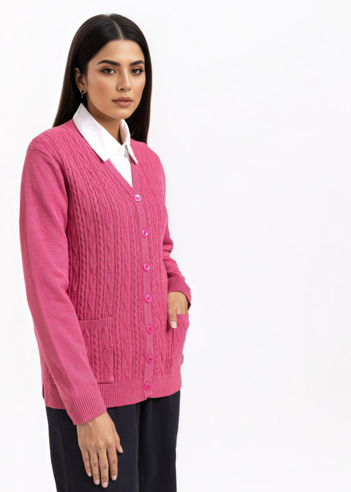 Pink-V-Cardigan Full Sleeves Sweater (25Y-215-67)