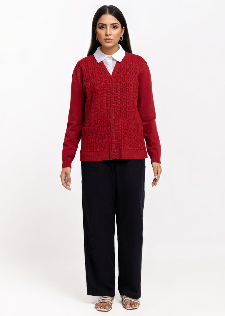 Maroon-V-Cardigan Full Sleeves Sweater (25Y-217-67)