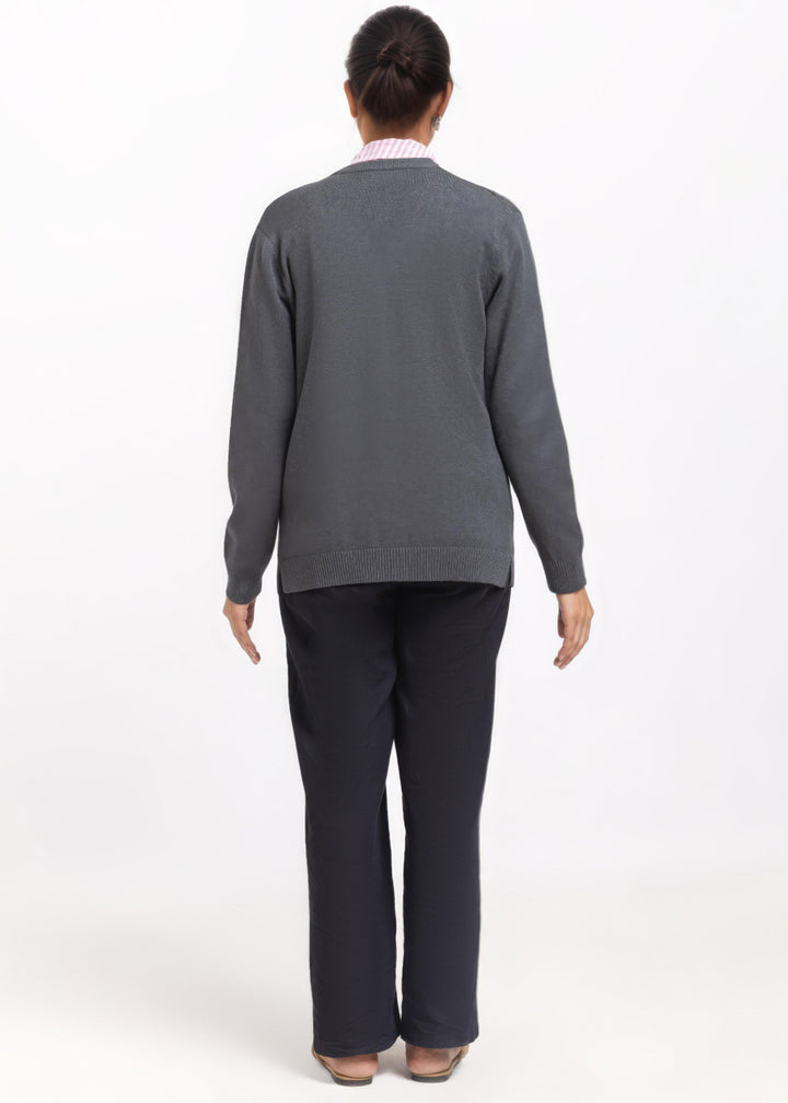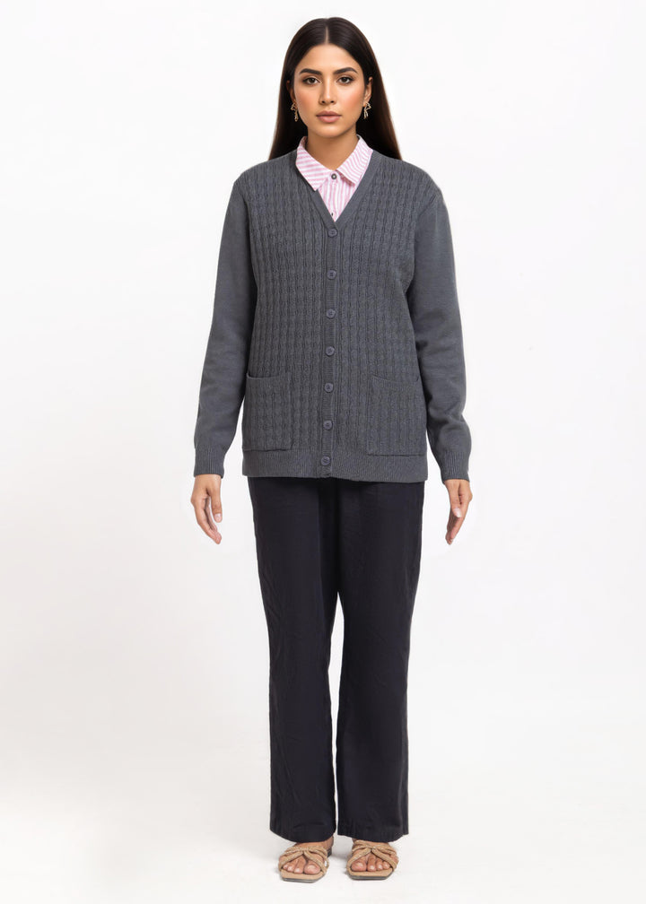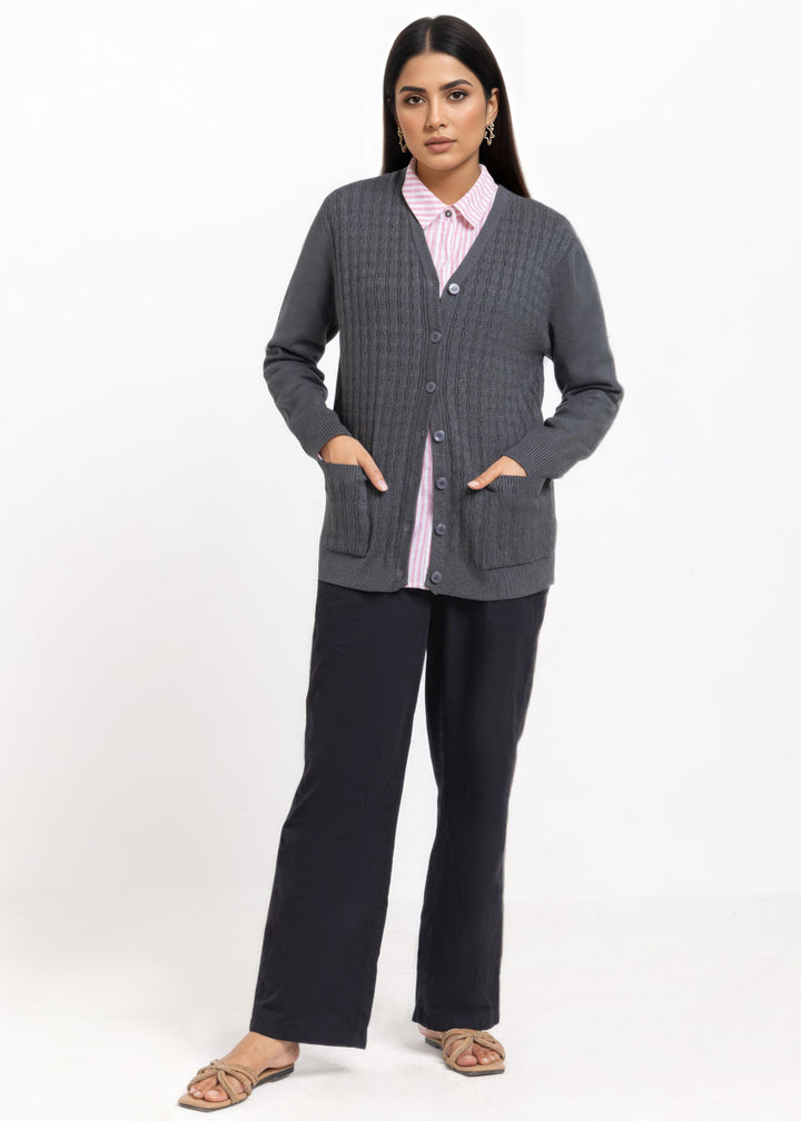 Charcoal-V-Cardigan Full Sleeves Sweater (25Y-219-67)