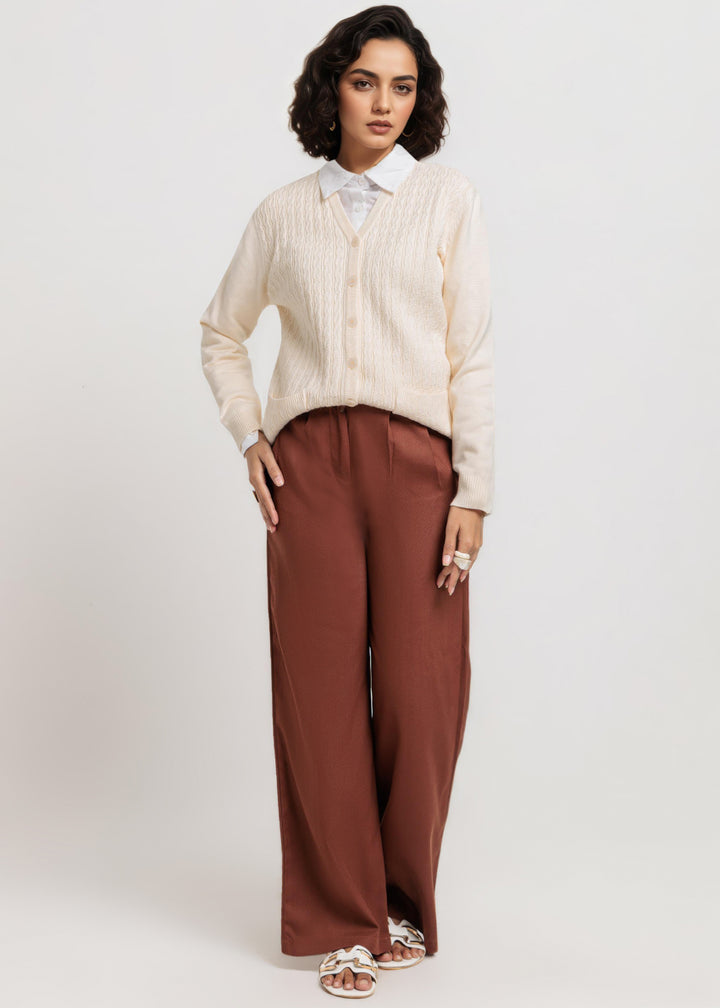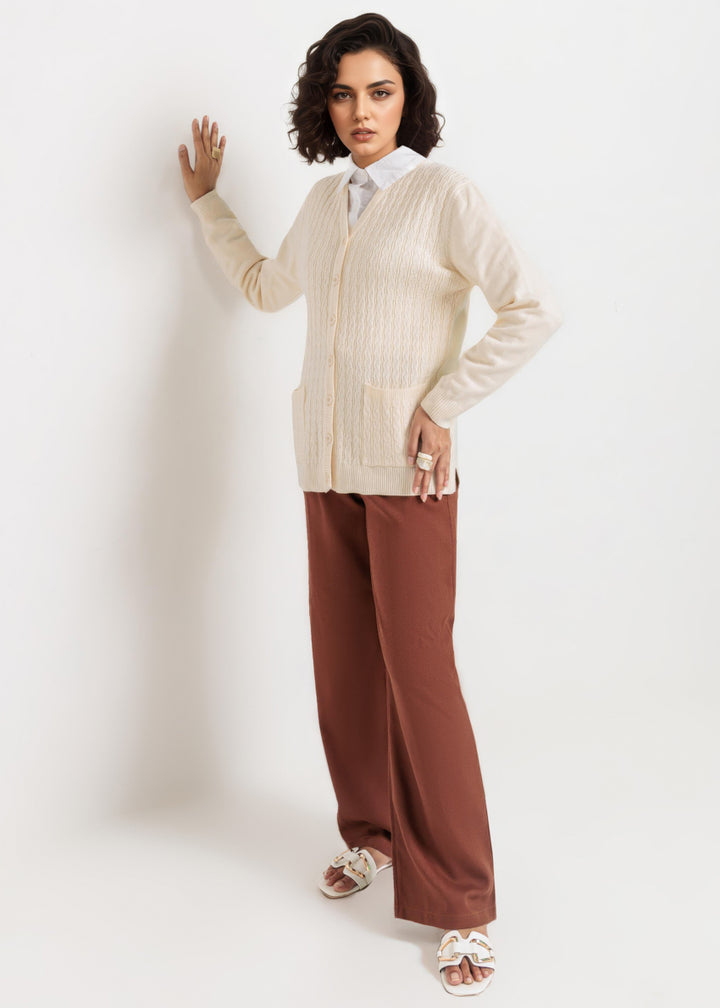 O-White-V-Cardigan Full Sleeves Sweater (25Y-219-67)