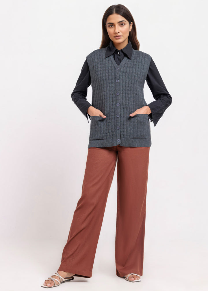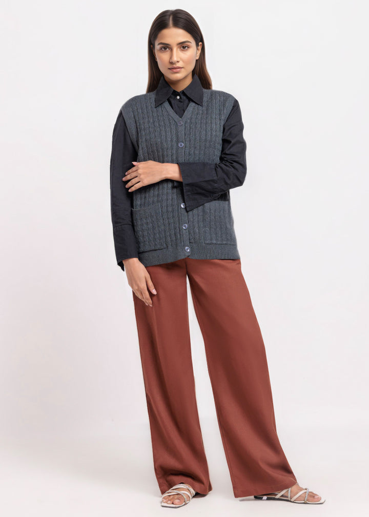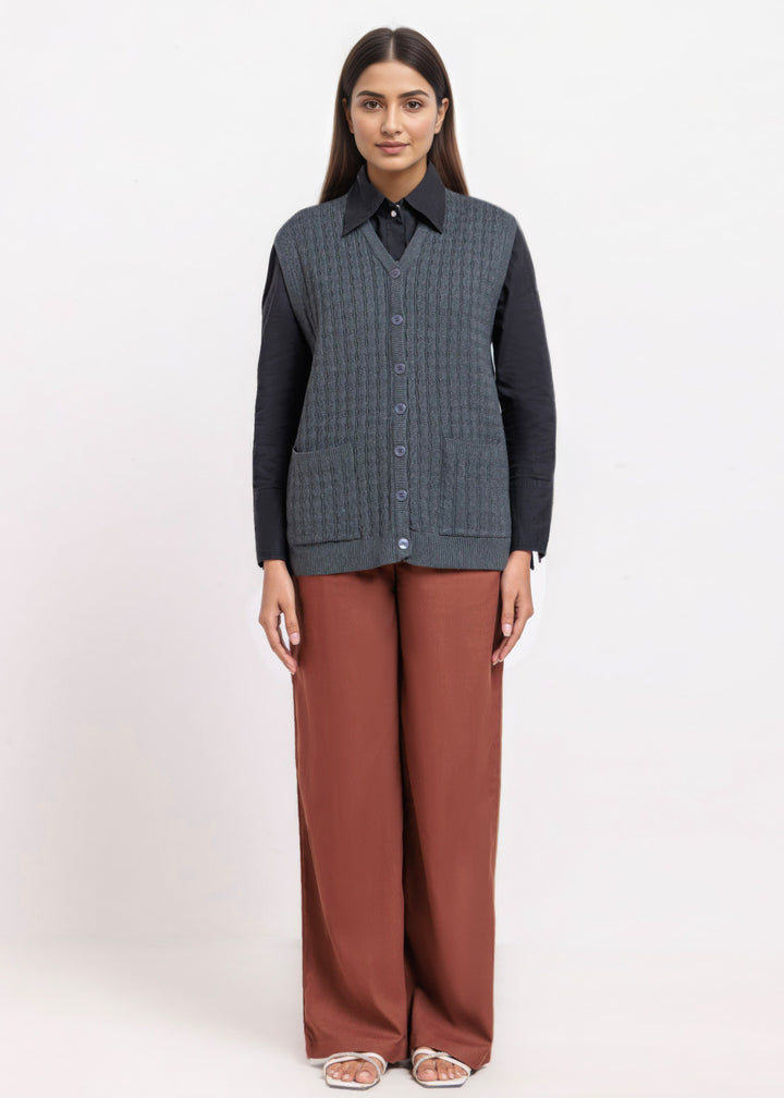 Charcoal-V-Cardigan Sando Sweater (25Y-220-67)
