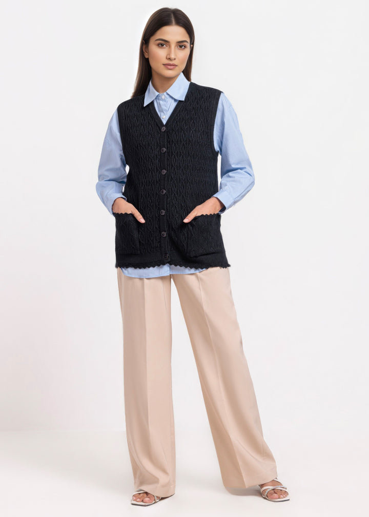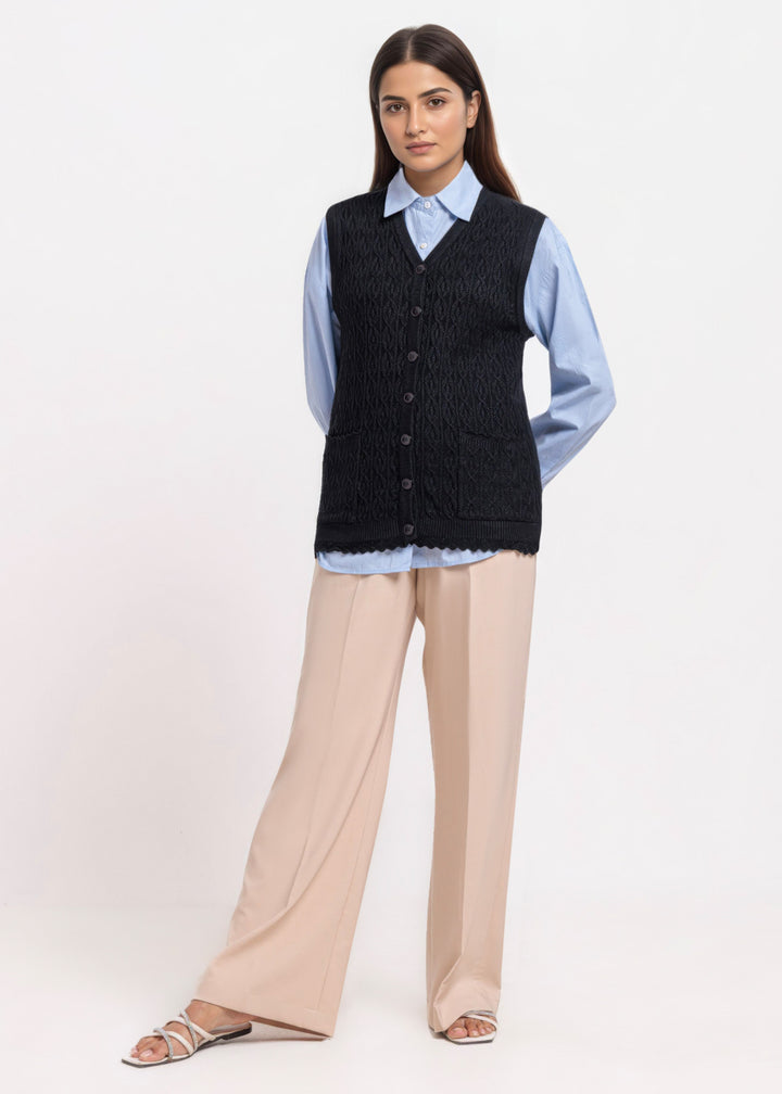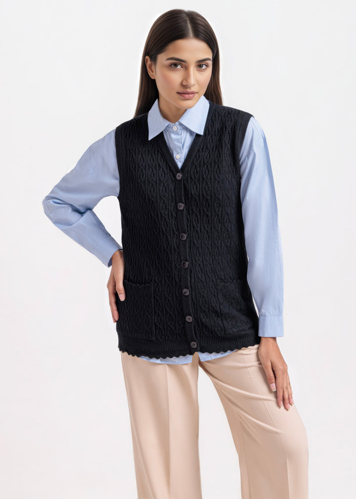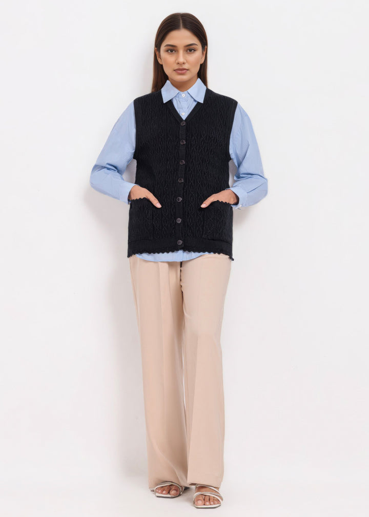 Black-V-Cardigan Sando Sweater (25Y-224-67)