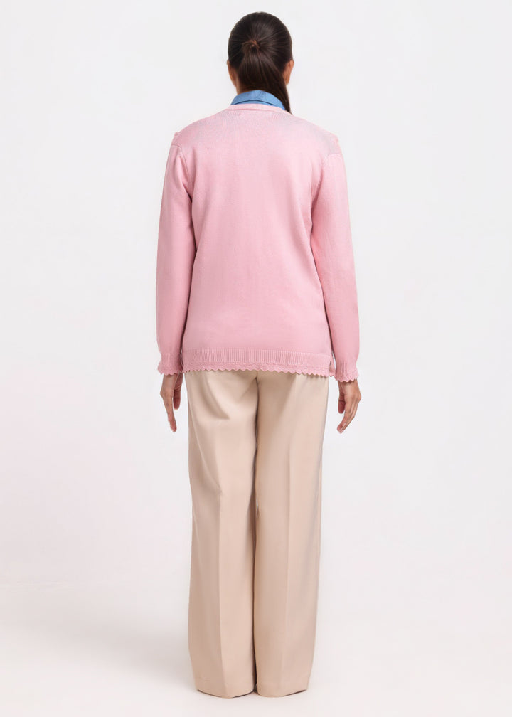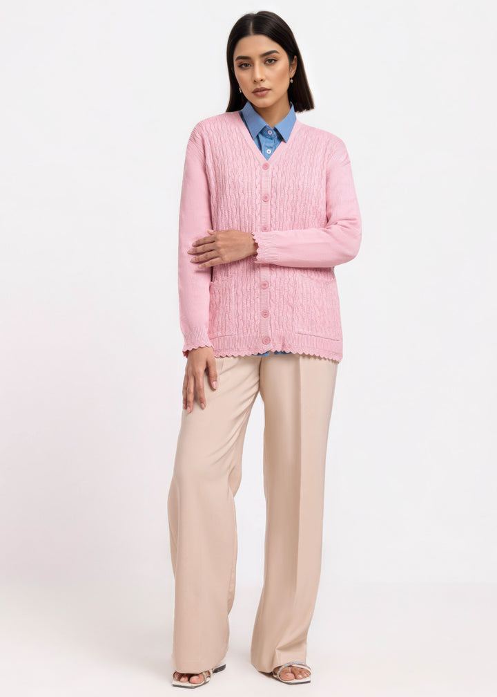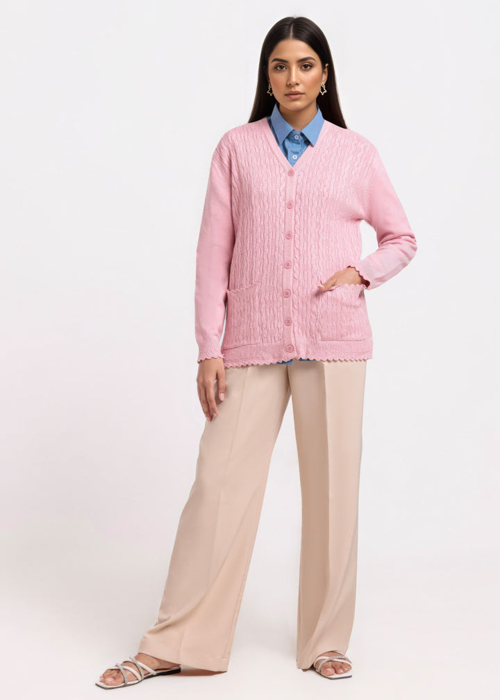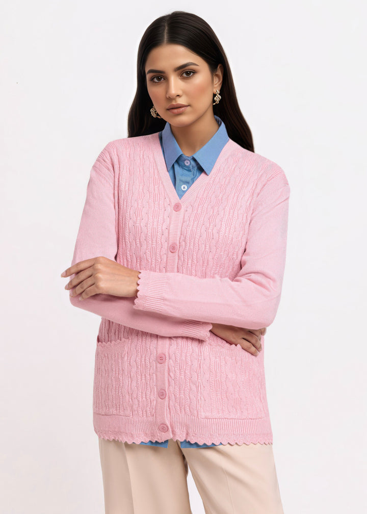 Pink-V-Cardigan Full Sleeves Sweater (25Y-225-67)
