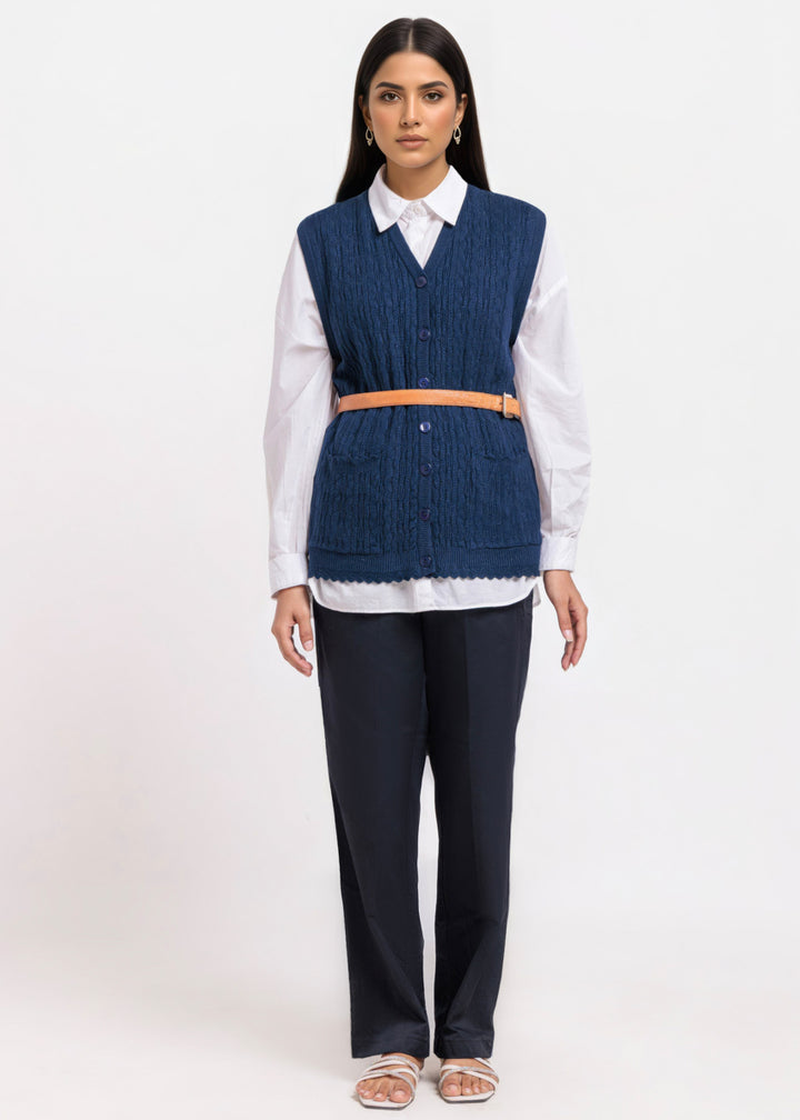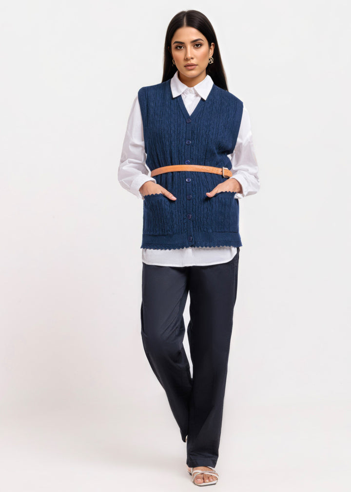 Navy-V-Cardigan Sando Sweater (25Y-226-67)