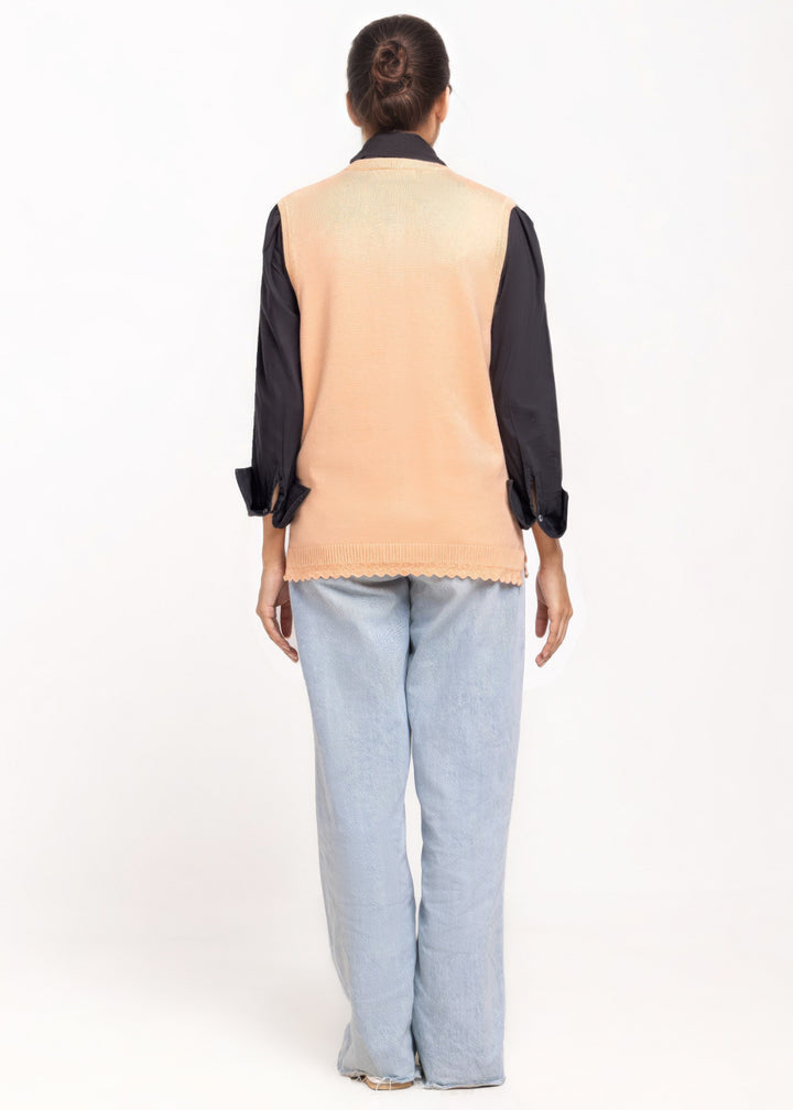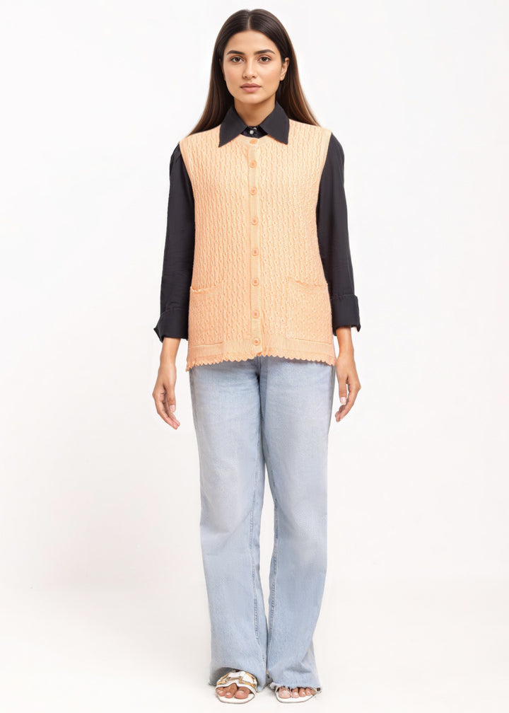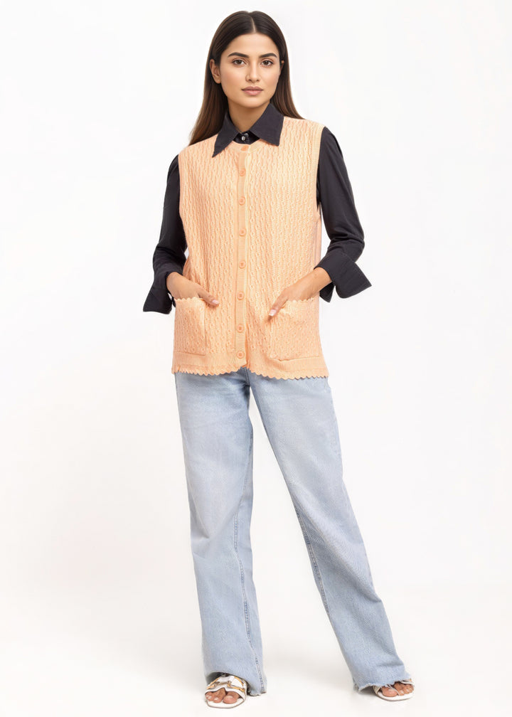 L-Peach-R-Neck Cardigan Sando Sweater (25Y-228-67)