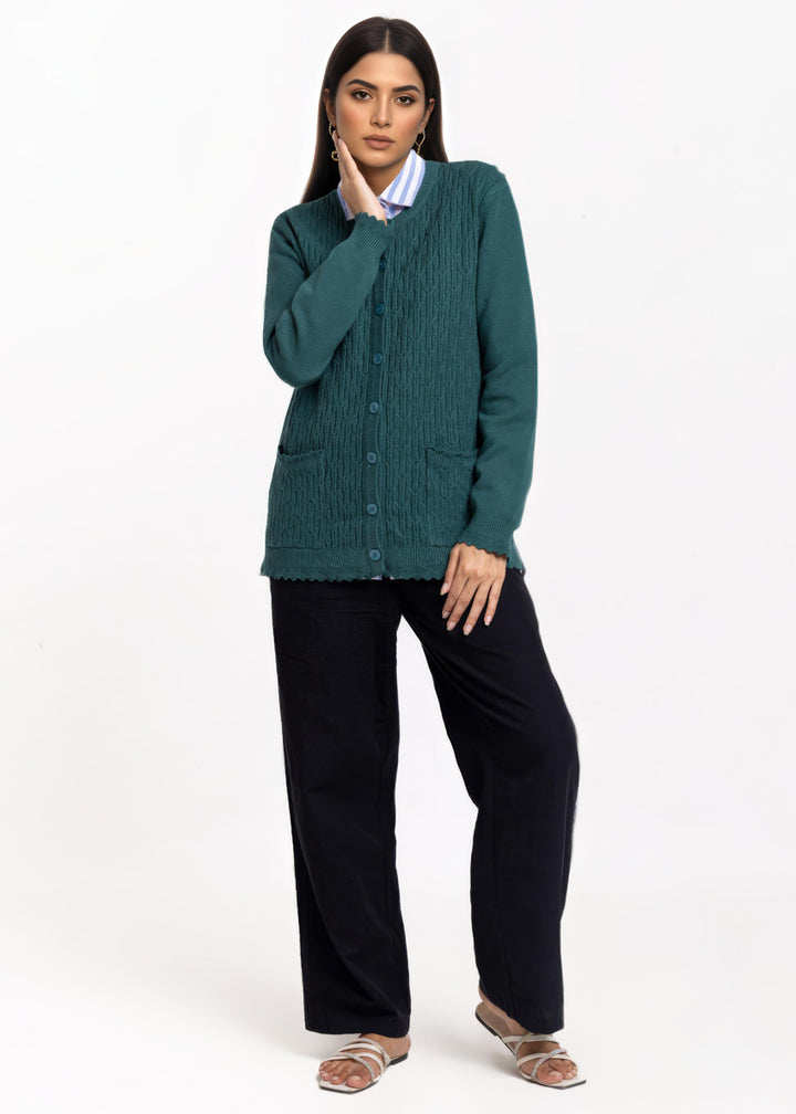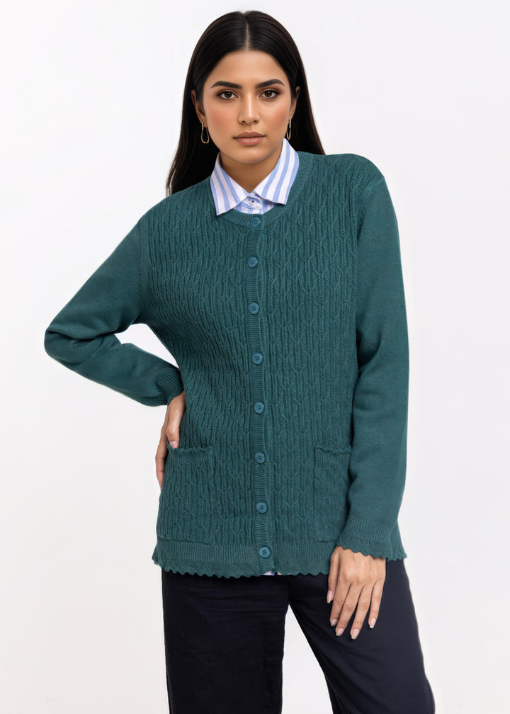 E-Green-R-Neck Cardigan Full Sleeves Sweater (25Y-229-67)