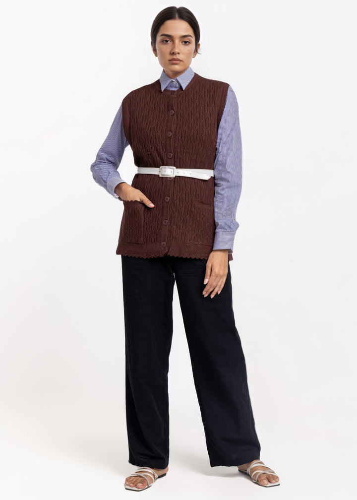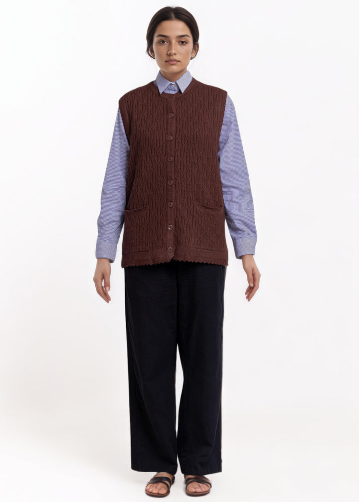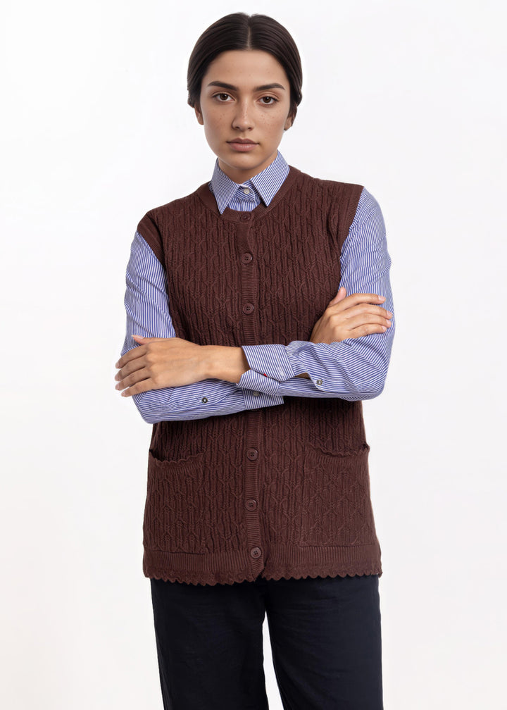 D-Brown-R-Neck Cardigan Sando Sweater (25Y-230-67)