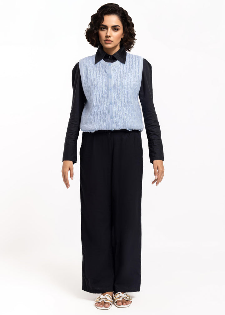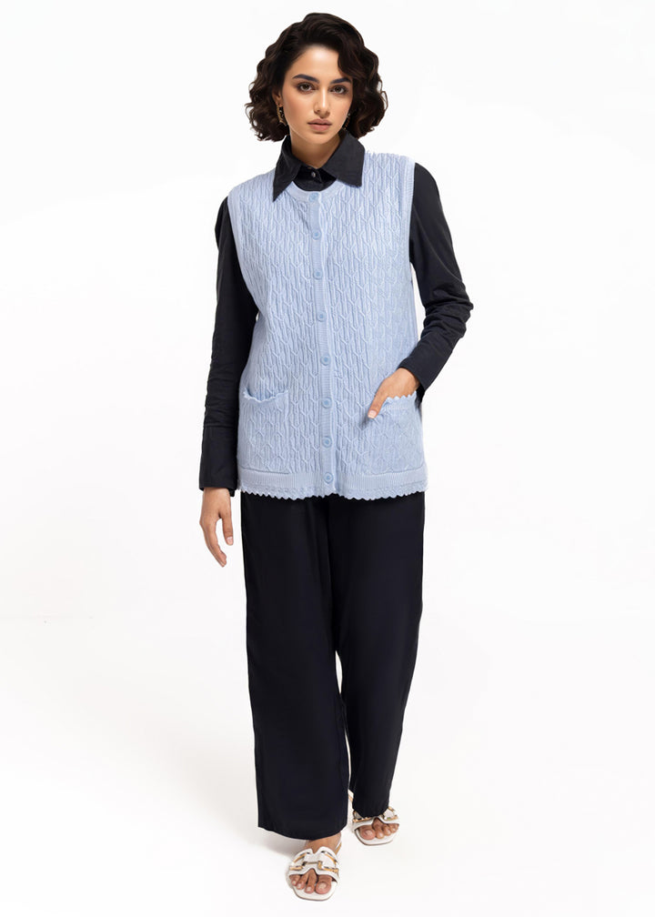 Sky-Blue-R-Neck Cardigan Sando Sweater (25Y-230-67)