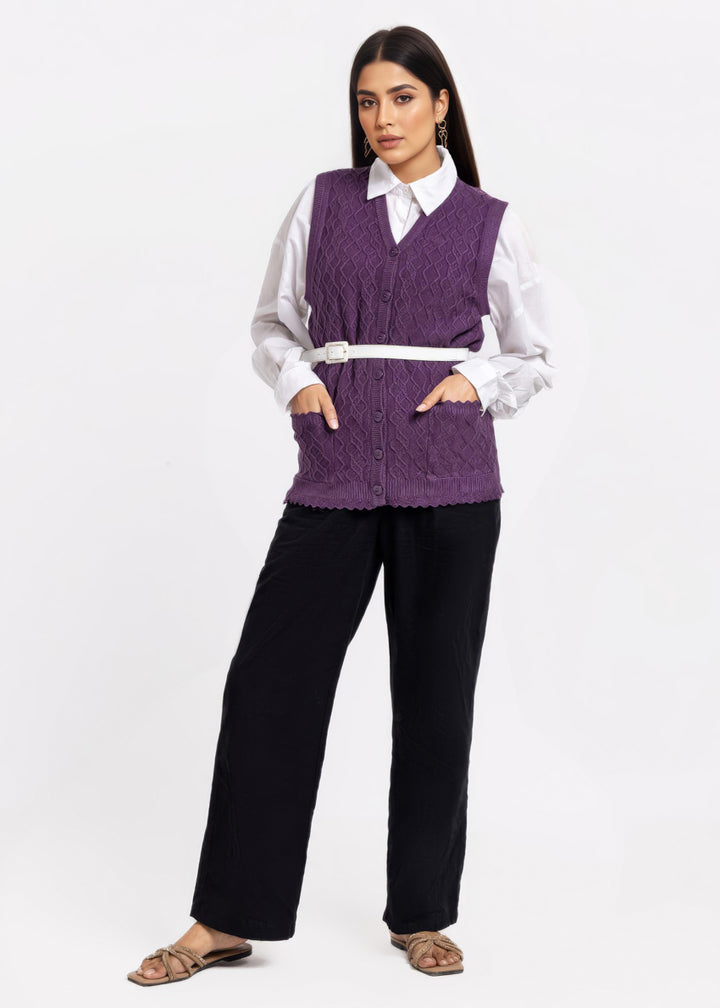 Purple-V-Cardigan Sando Sweater (25Y-232-67)
