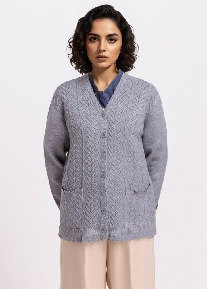 Grey-V-Cardigan Full Sleeves Sweater (25Y-235-67)