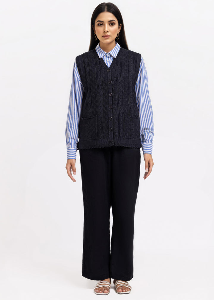 Black-V-Cardigan Sando Sweater (25Y-240-67)
