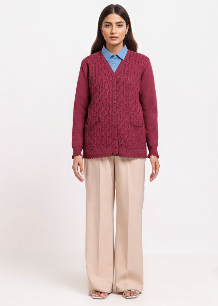 Maroon-V-Cardigan Full Sleeves Sweater (25Y-241-67)
