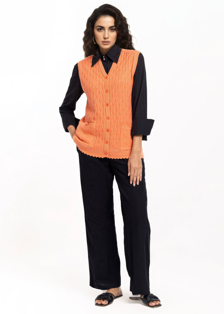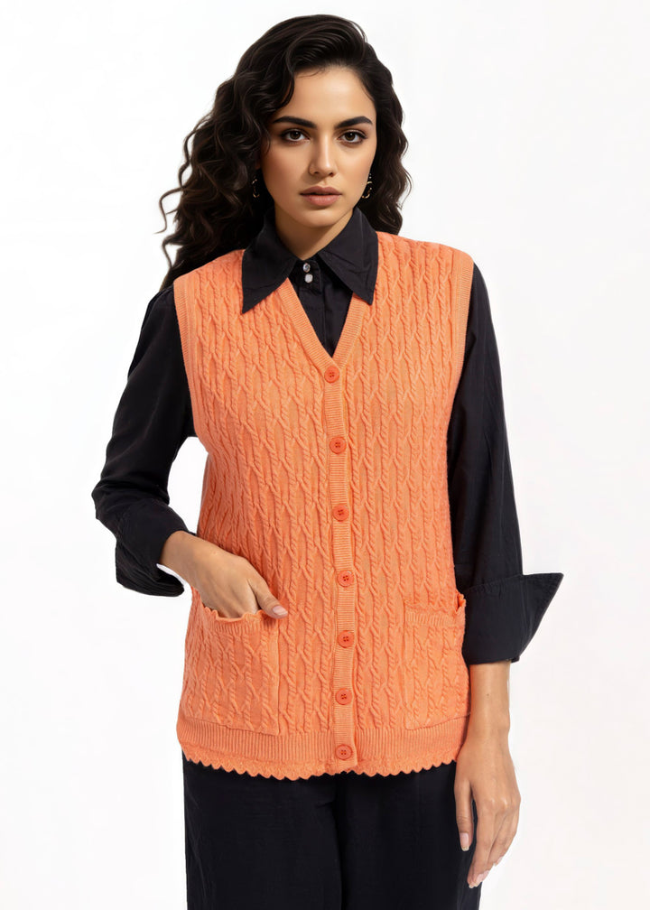 Peach-V-Cardigan Sando Sweater (25Y-242-67)
