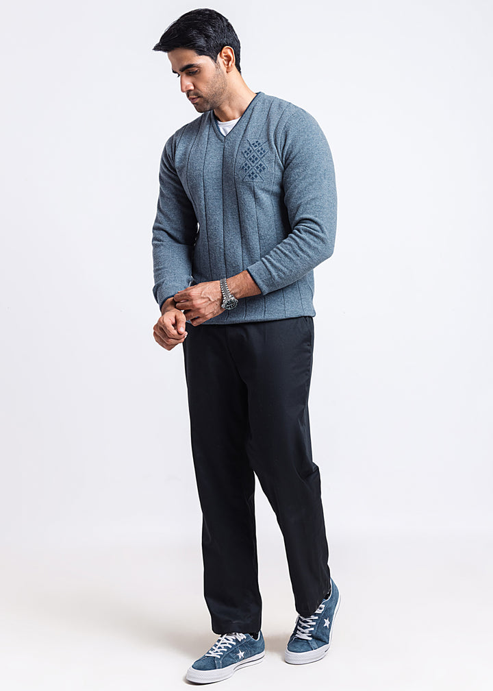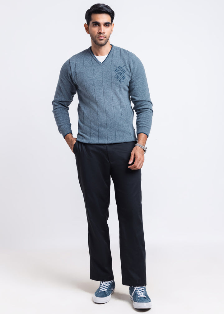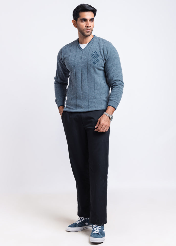 V-Blue-V-Neck Full Sleeves Sweater (502-14)