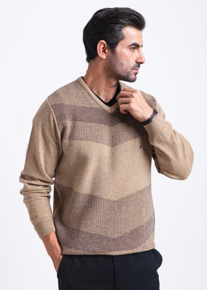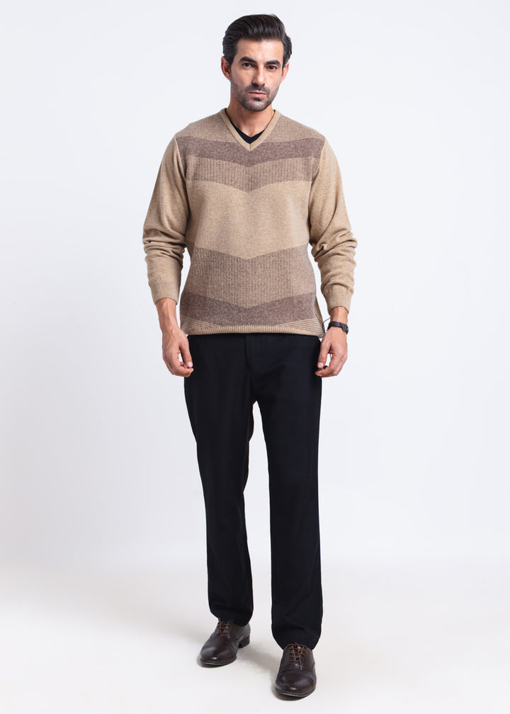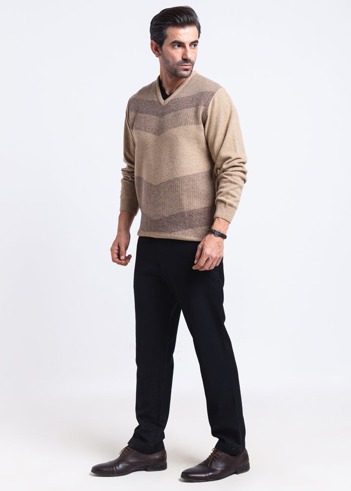 Wheat-V-Neck Full Sleeves Sweater (510-14)