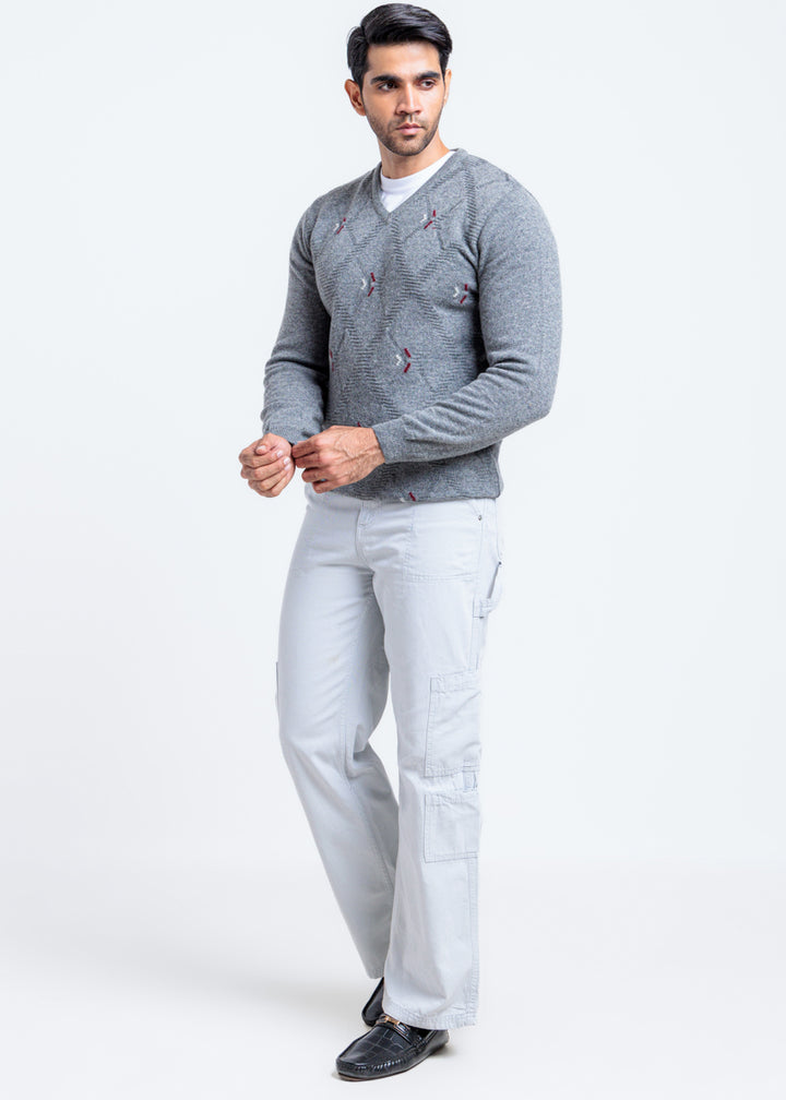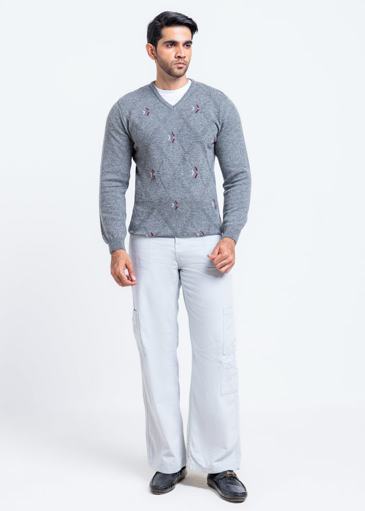 St-Grey-V-Neck Full Sleeves Sweater (514-14)