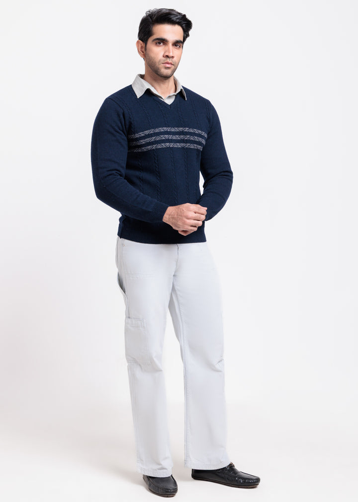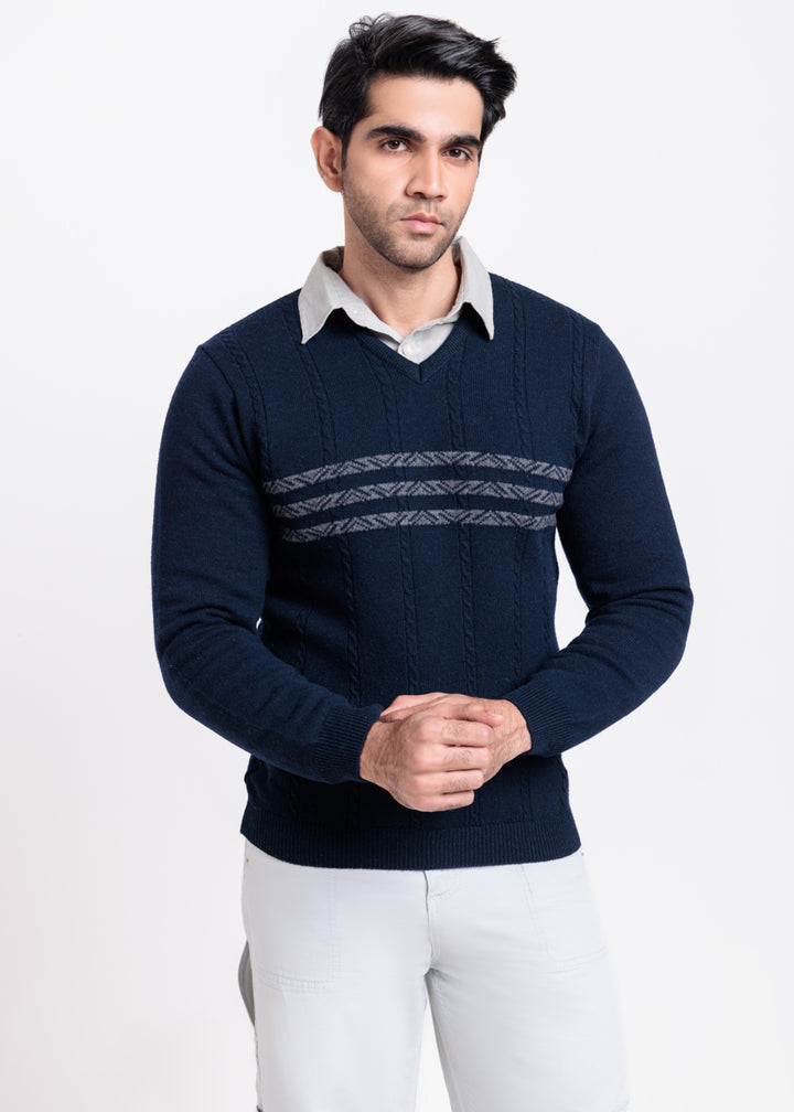 Dn-Blue-V-Neck Full Sleeves Sweater (515-14)
