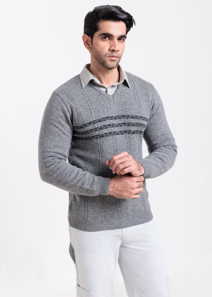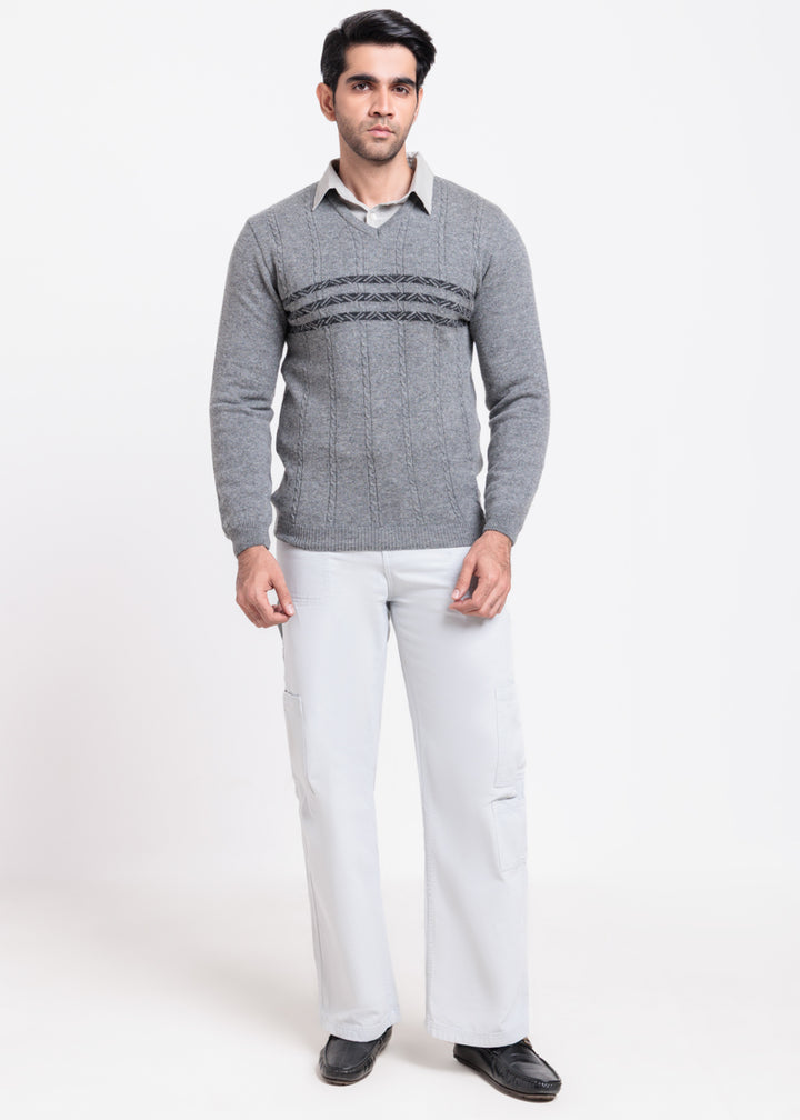 St-Grey-V-Neck Full Sleeves Sweater (515-14)