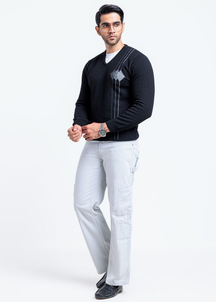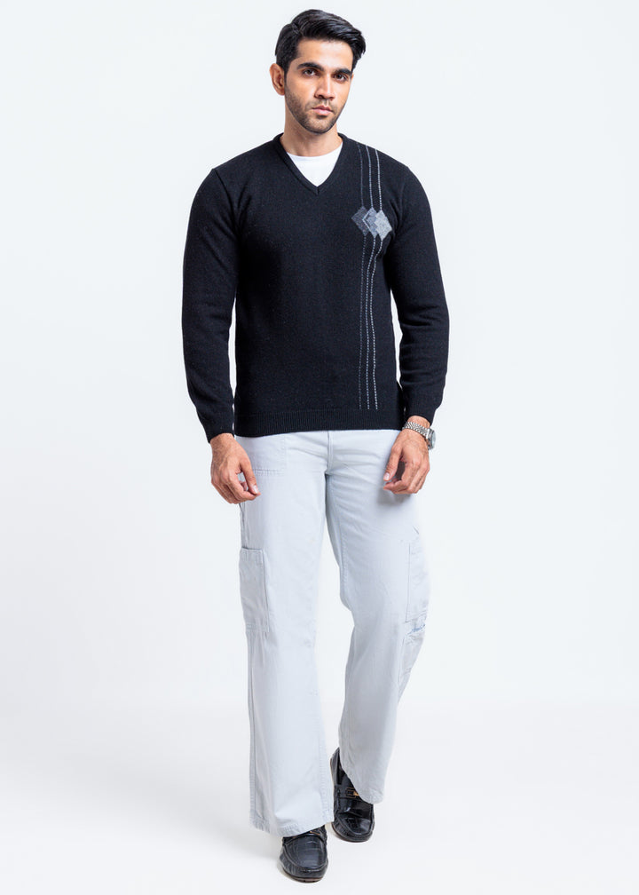 J-Black-V-Neck Full Sleeves Sweater (516-14)