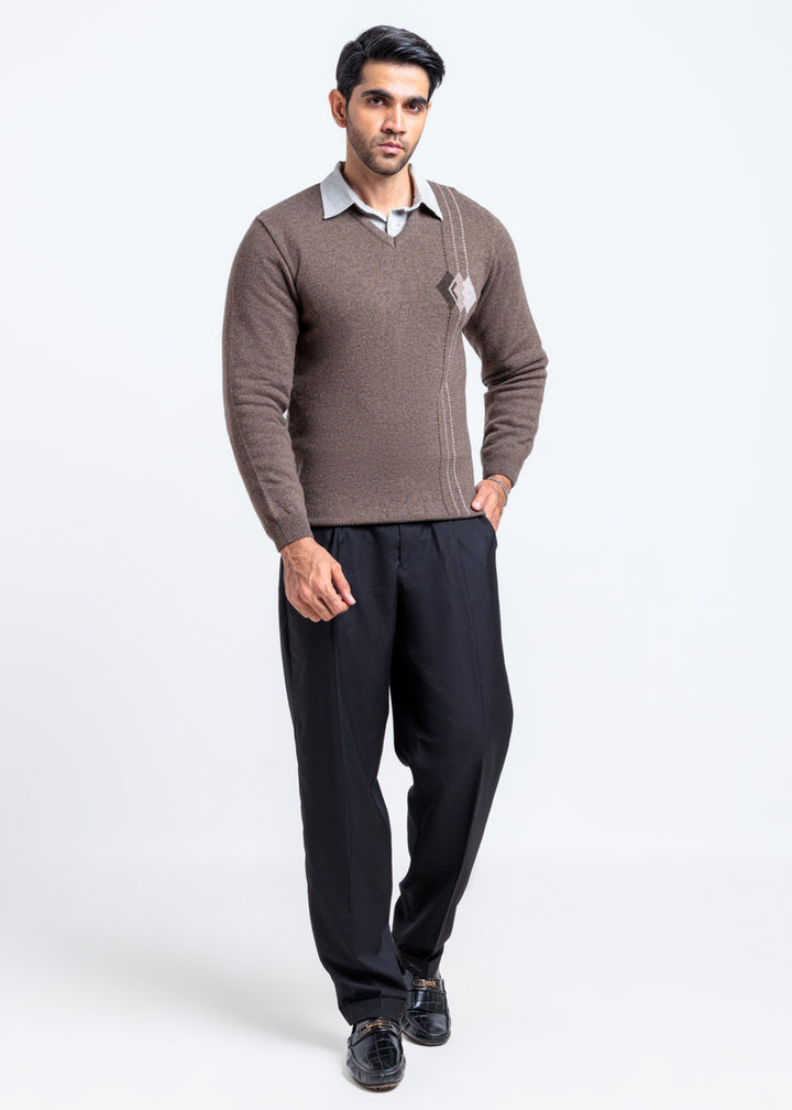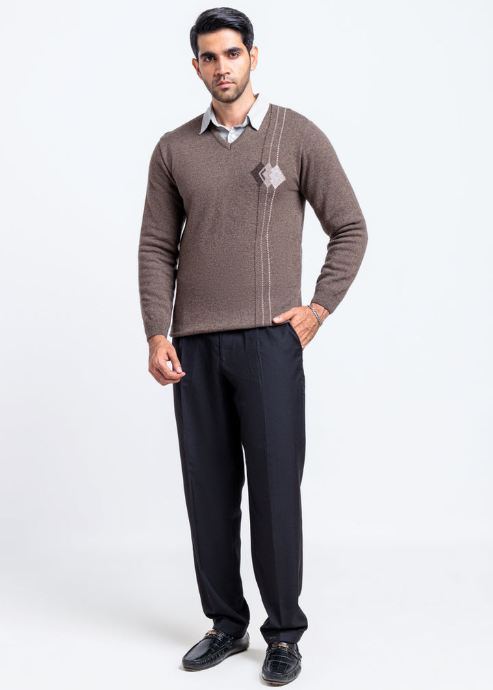N-Brown-V-Neck Full Sleeves Sweater (516-14)