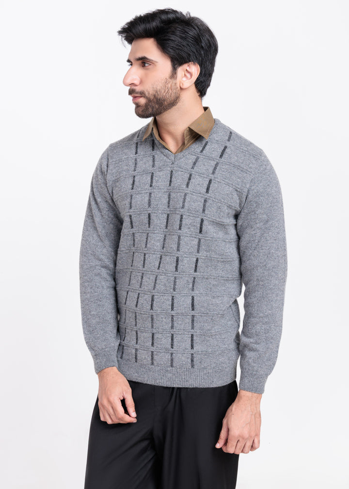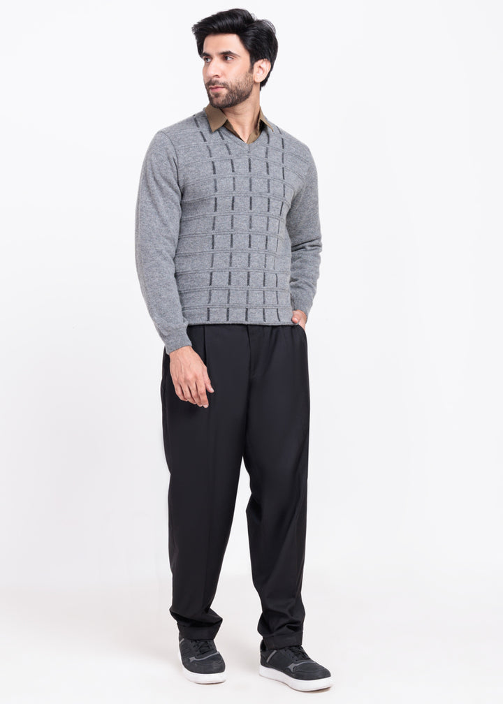 St-Grey-V-Neck Full Sleeves Sweater (517-14)