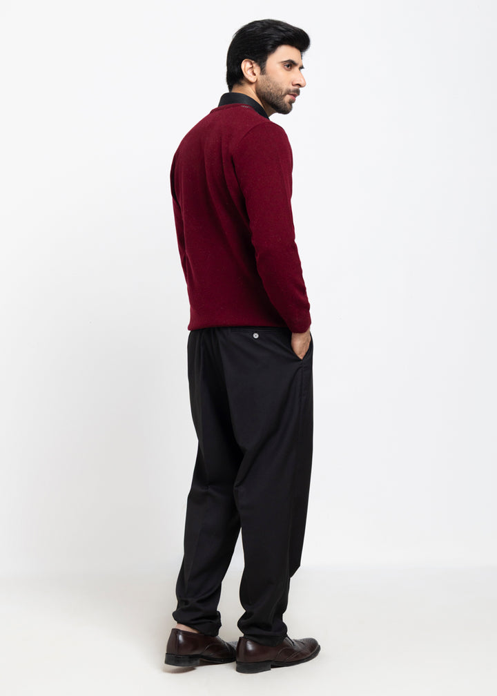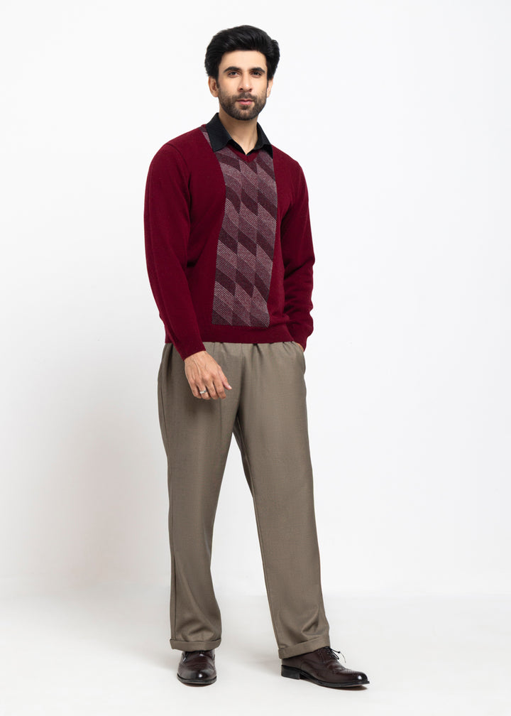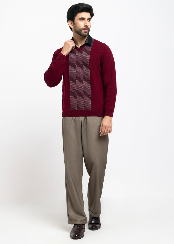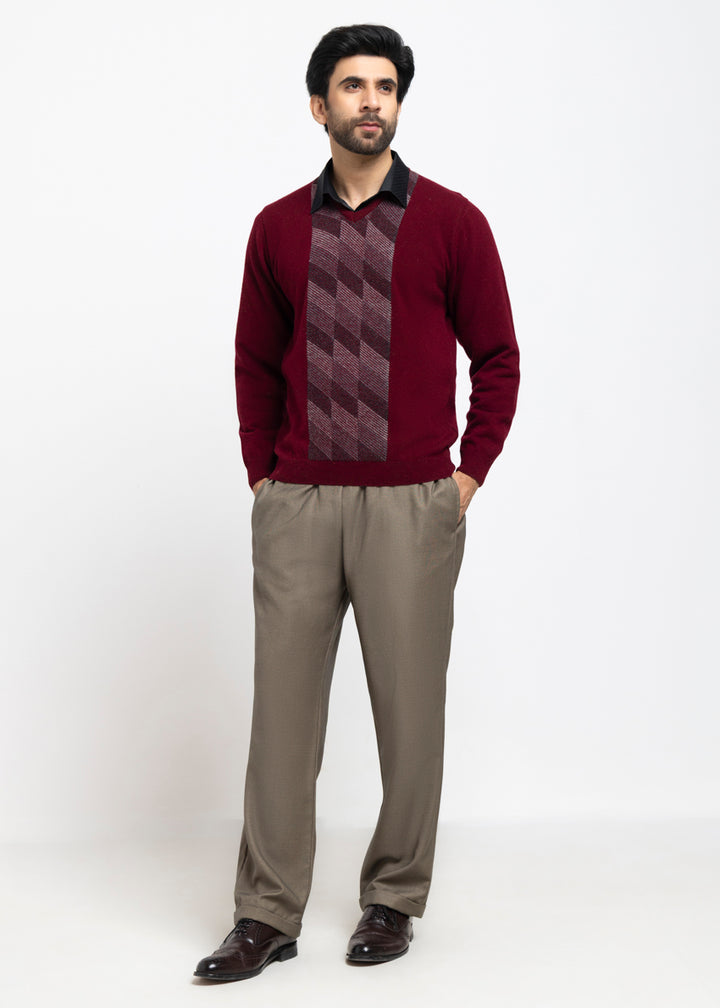 O-Maroon-V-Neck Full Sleeves Sweater (520-14)