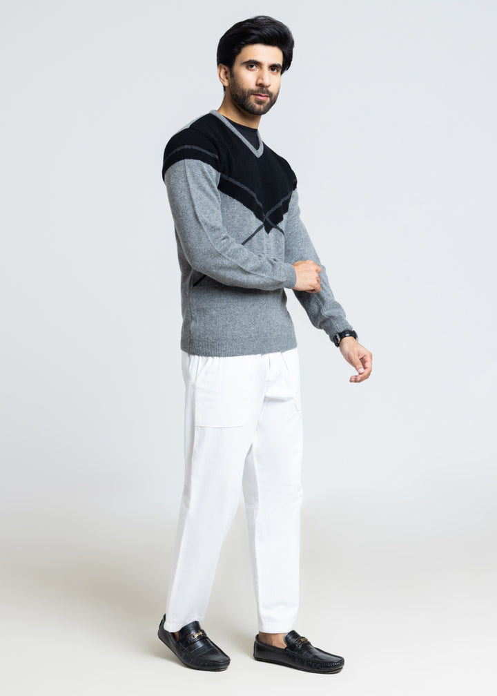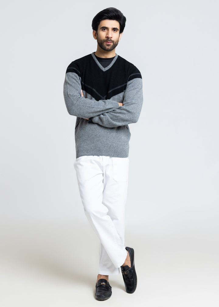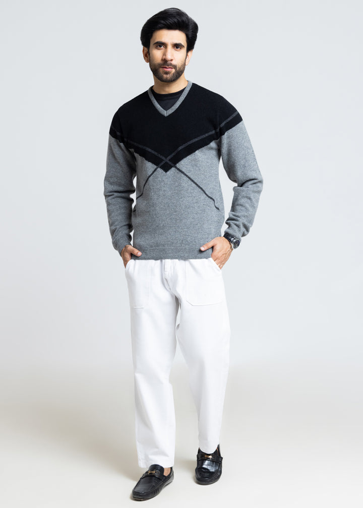 St-Grey-V-Neck Full Sleeves Sweater (521-14)