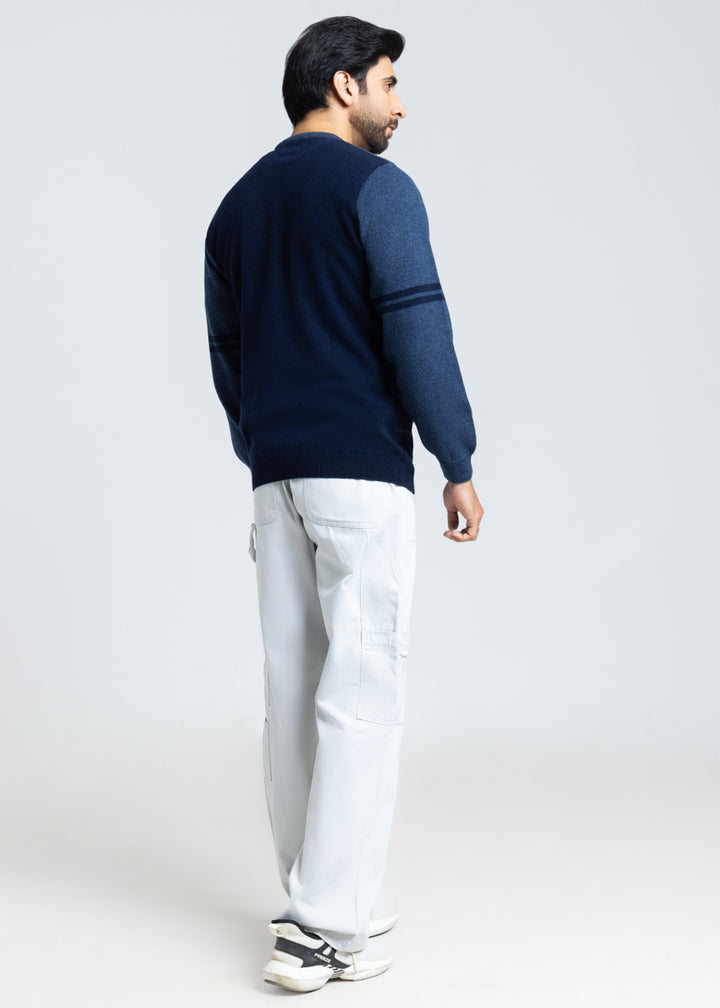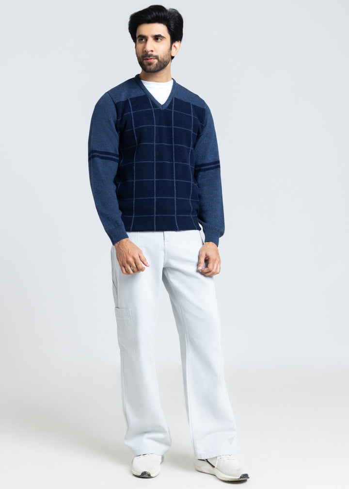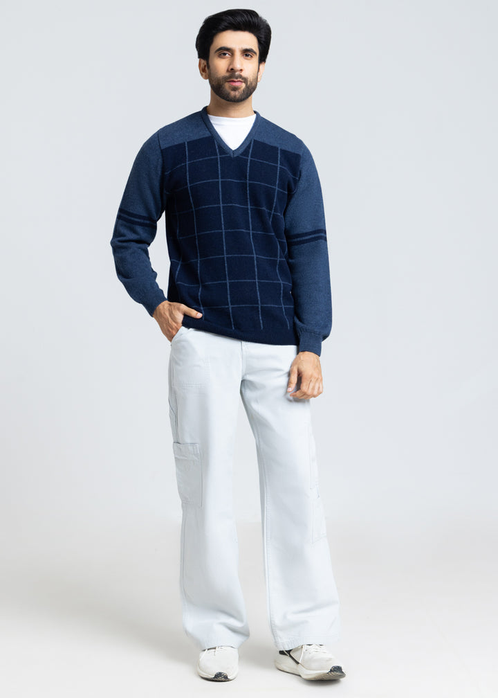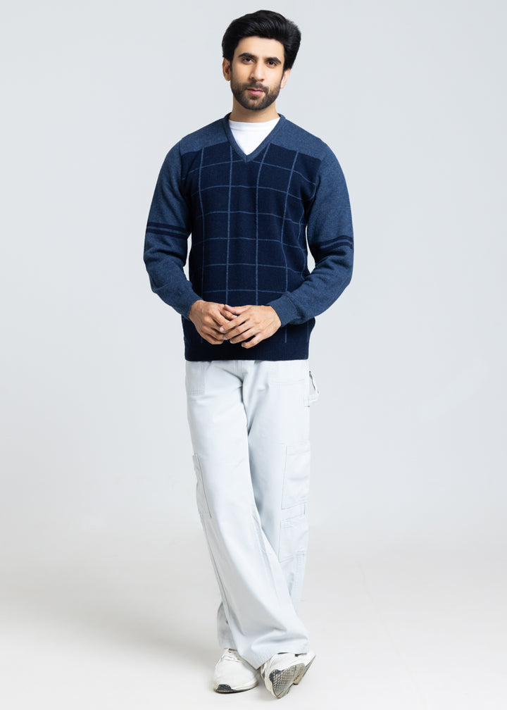 Dn-Blue-V-Neck Full Sleeves Sweater (522-14)