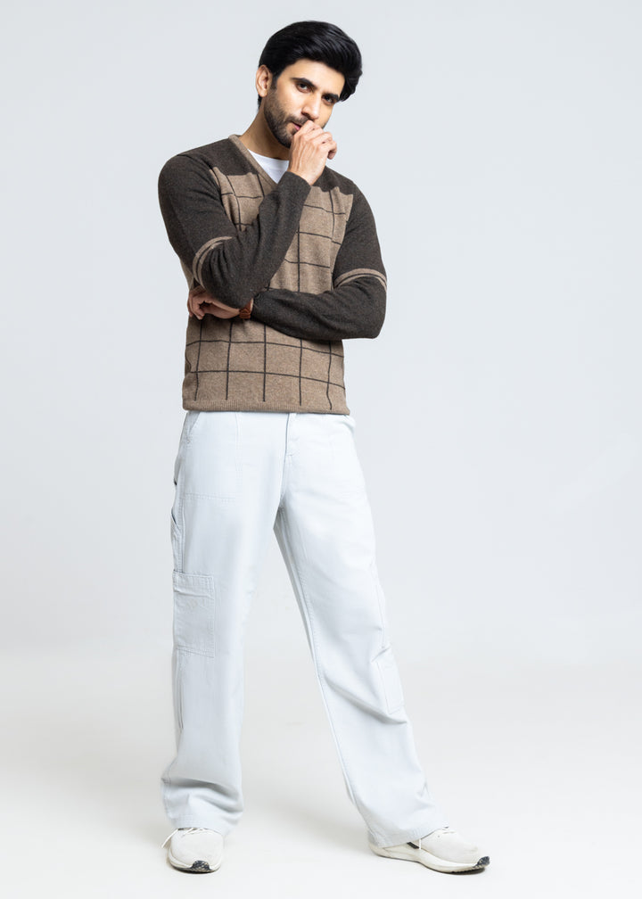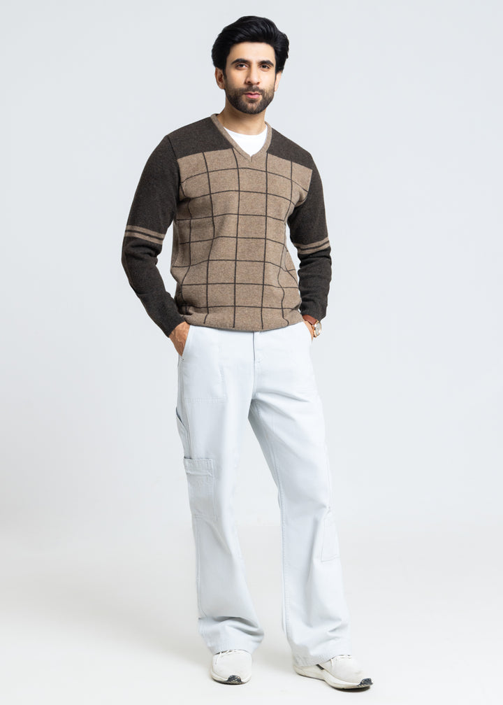 Linen-V-Neck Full Sleeves Sweater (522-14)
