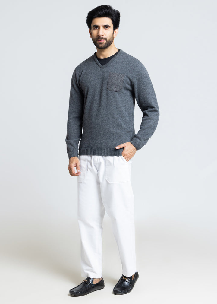 Black-V-Neck Full Sleeves Sweater (552-14)